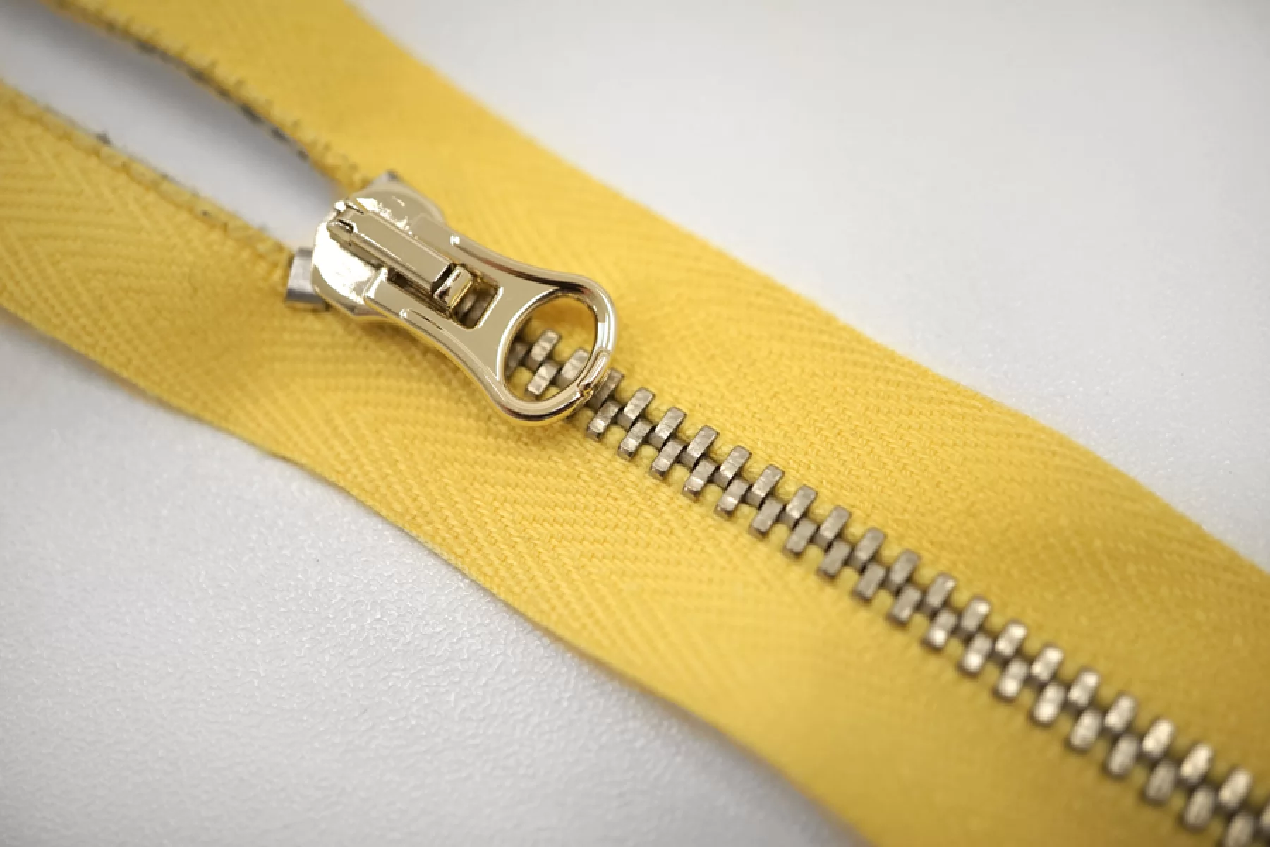 Молния металлическая однозамковая от "Lampo" разъёмная, желтая, цвет зубцов золотистый. Длина 46 см.