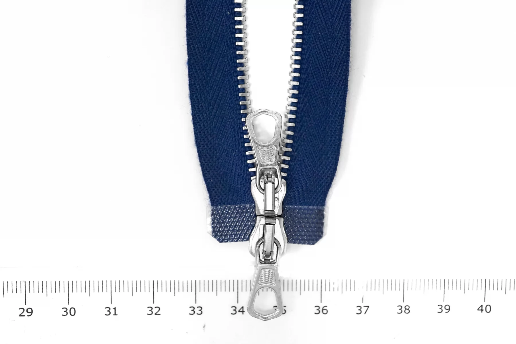 Молния металлическая от "Lampo"двухзамковая, синяя, цвет зубцов серебристый 38 см А18 34072209