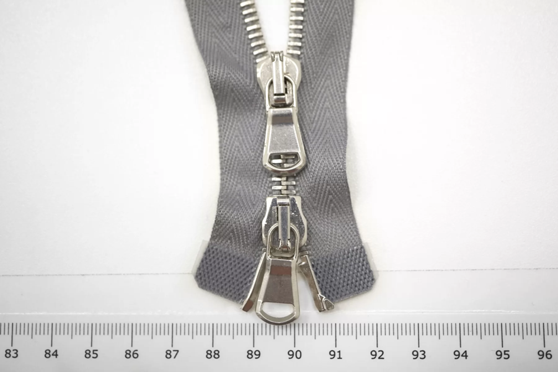 Молния металлическая от "Lampo" двухзамковая, разъёмная, серая, цвет зубцов серебристый. Длина 36 см.