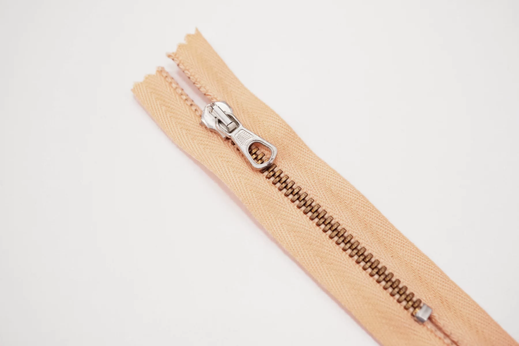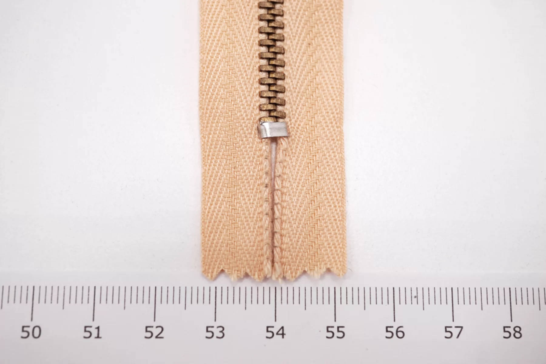 Молния от "Lampo" неразъемная, персиковая, цвет зубцов золотистый, пулер и слайдер серебристые. Длина 8 см.