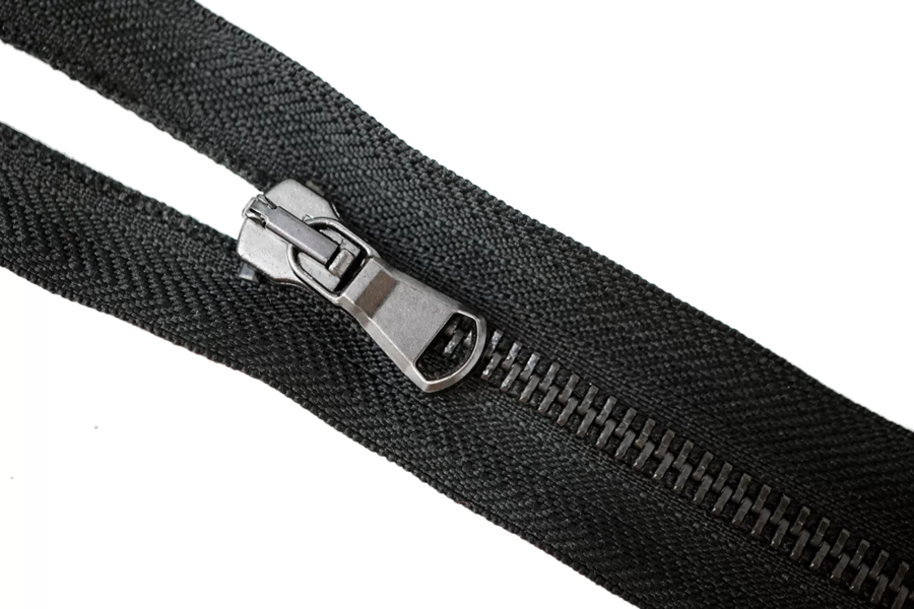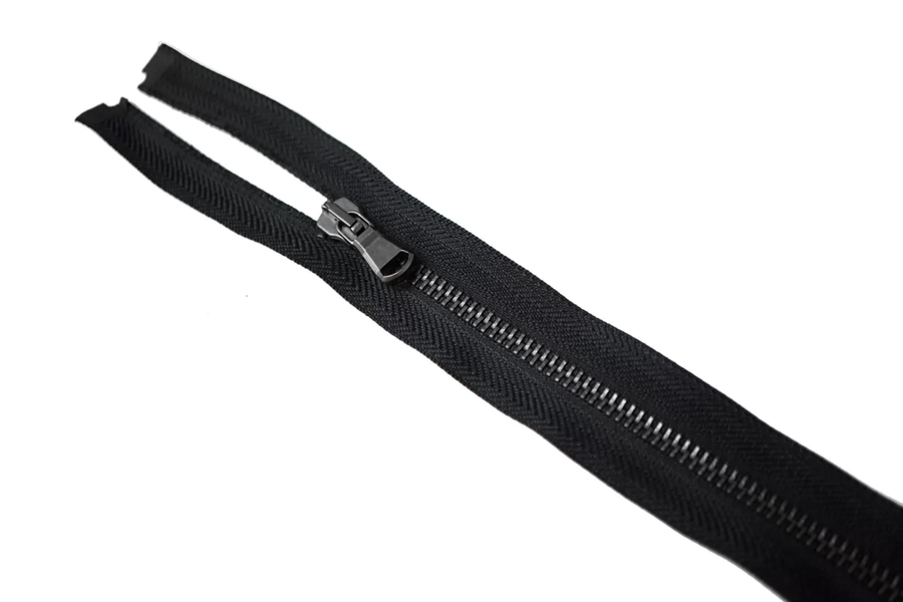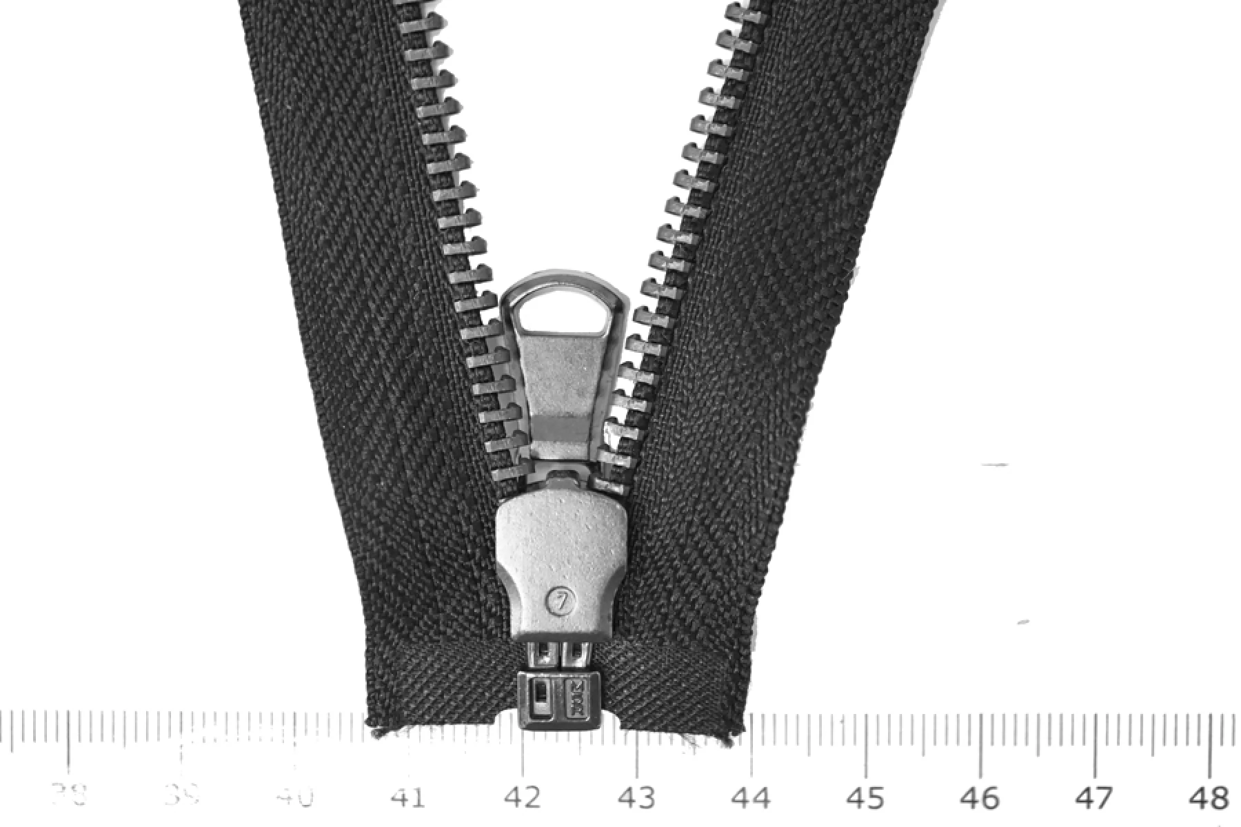 Молния металлическая разъемная, один замок. Цвет молнии черный, цвет зубцов, пуллера и слайдера черный металл. Длина 50см. Ширина молнии 3,1 см, ширина зубцов 5 мм.