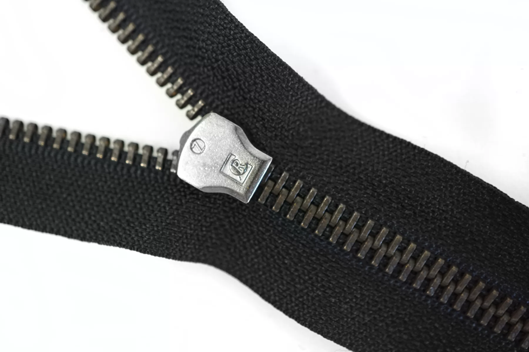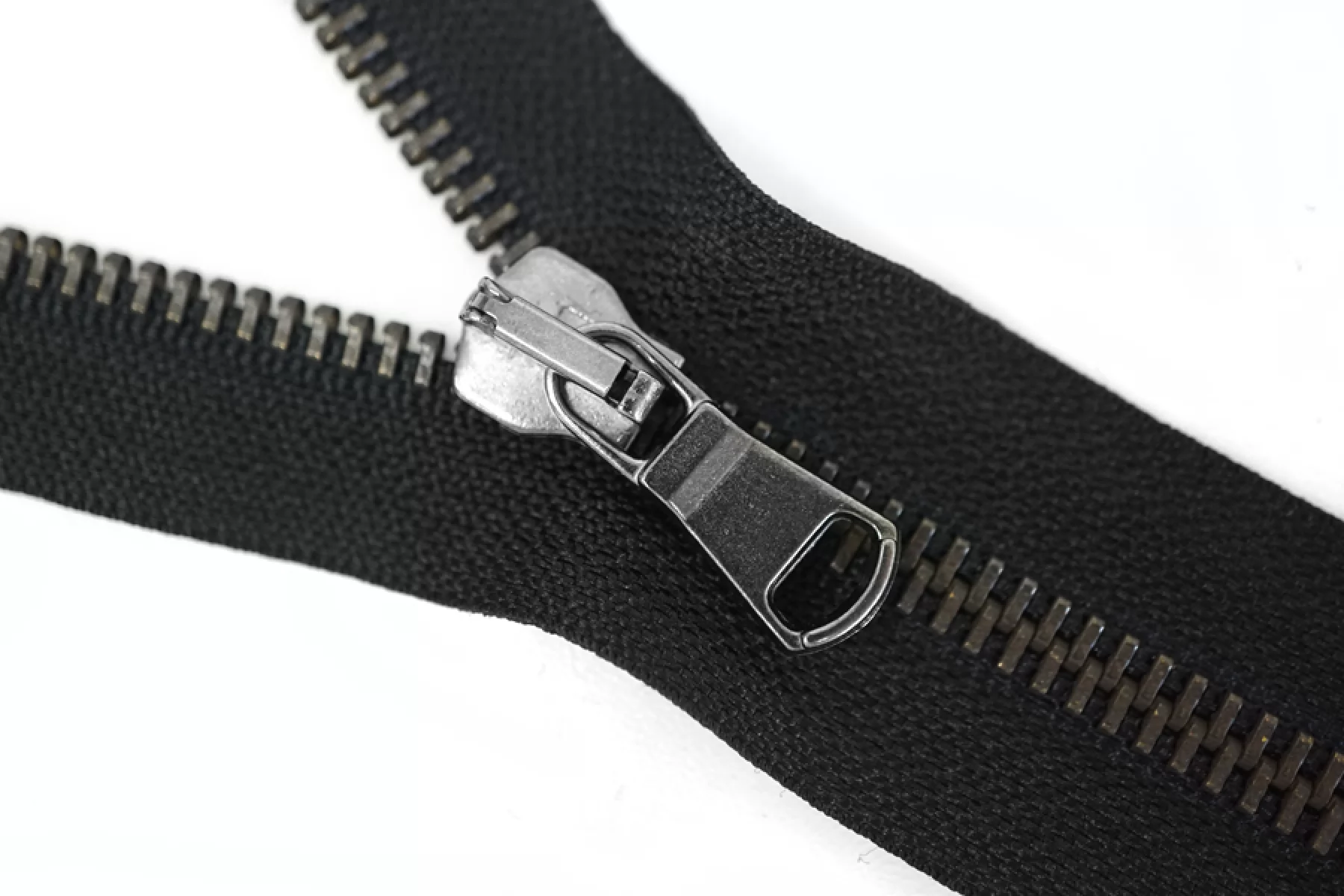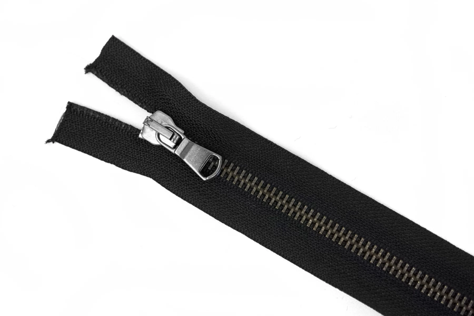 Итальянская молния разъёмная, однозамковая, черного оттенка. Материал зубцов, слайдера и пулера - металл, цвет - никель и темная античная бронза. Длина 60 см. Ширина молнии 3 см. Ширина зубцов 6 мм.