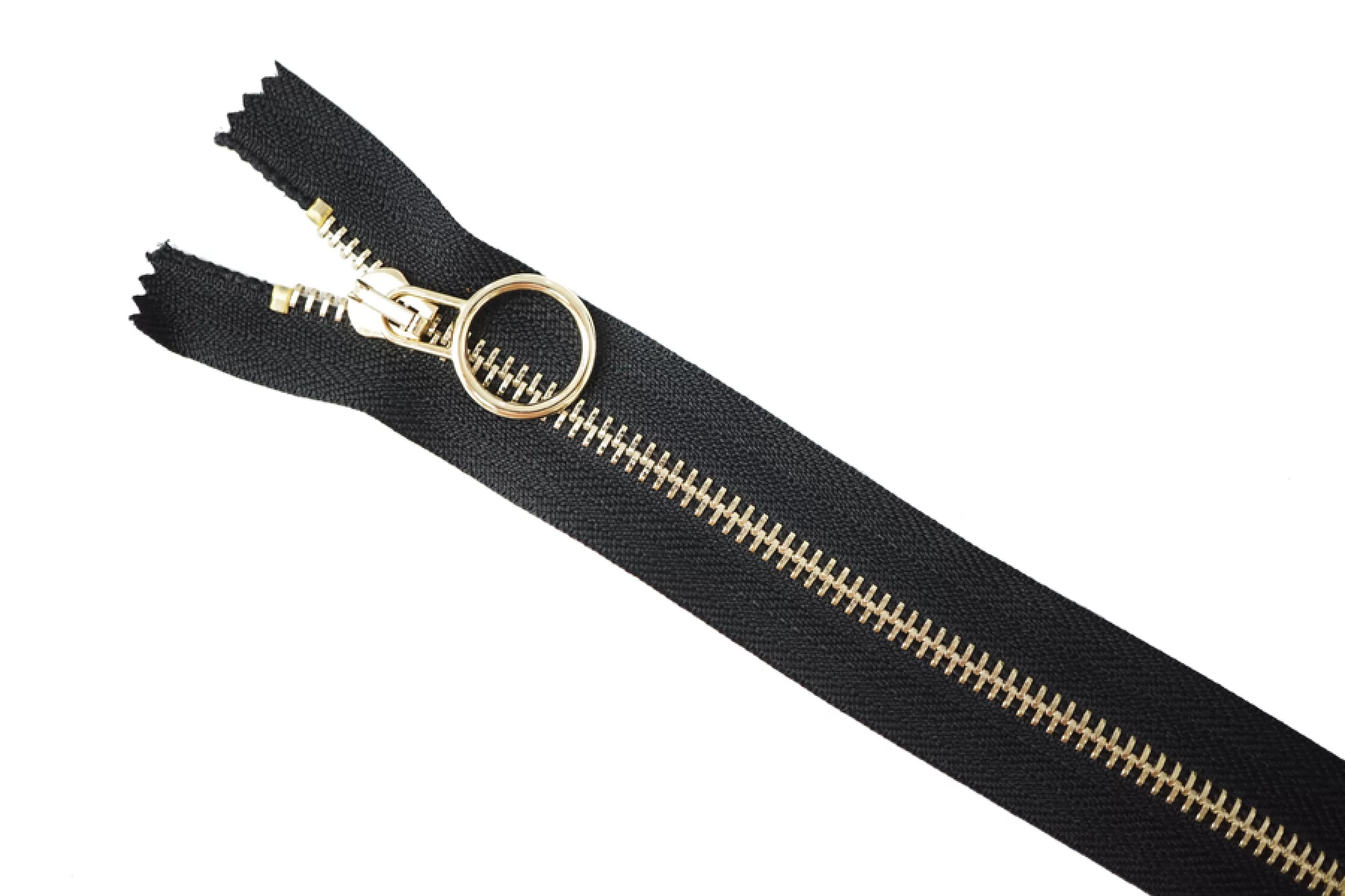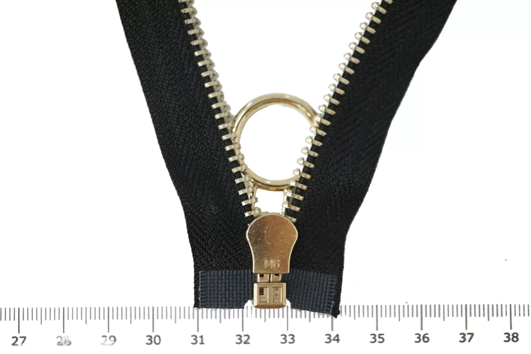 Молния металлическая разъемная, один замок. Цвет молнии черный, цвет зубцов, пуллера и слайдера золото. Длина 83см. Ширина молнии 3см, ширина зубцов 5мм.