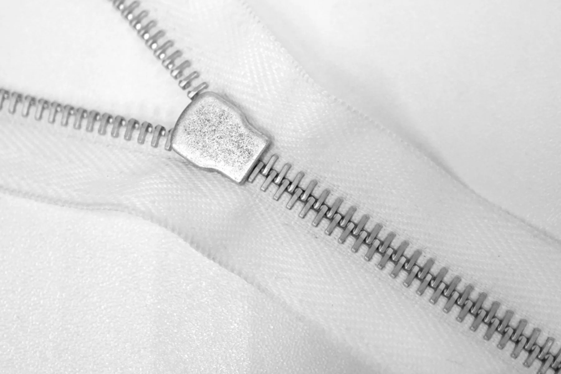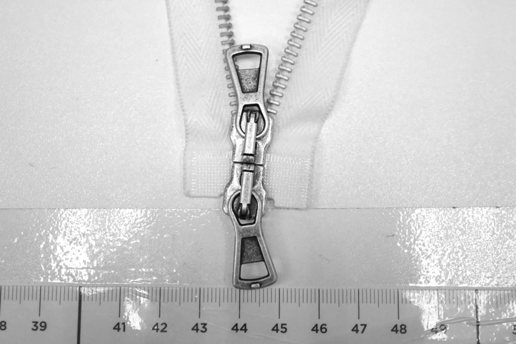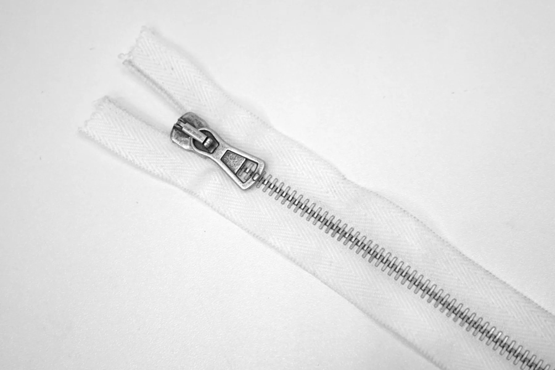 Молния металлическая разъемная двухзамковая. Цвет молнии белый, цвет зубцов, пуллера и слайдера серебряный. Длина 99см. Ширина молнии 3см, ширина зубцов 6мм.