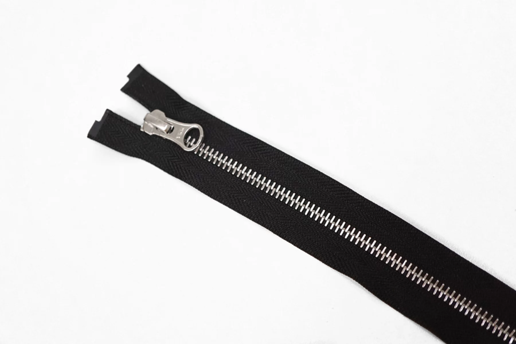 Молния металлическая разъемная двухзамковая. Цвет молнии черный, цвет зубцов, пуллера и слайдера серебряный. Длина 76 см. Ширина молнии 3см, ширина зубцов 6мм.
