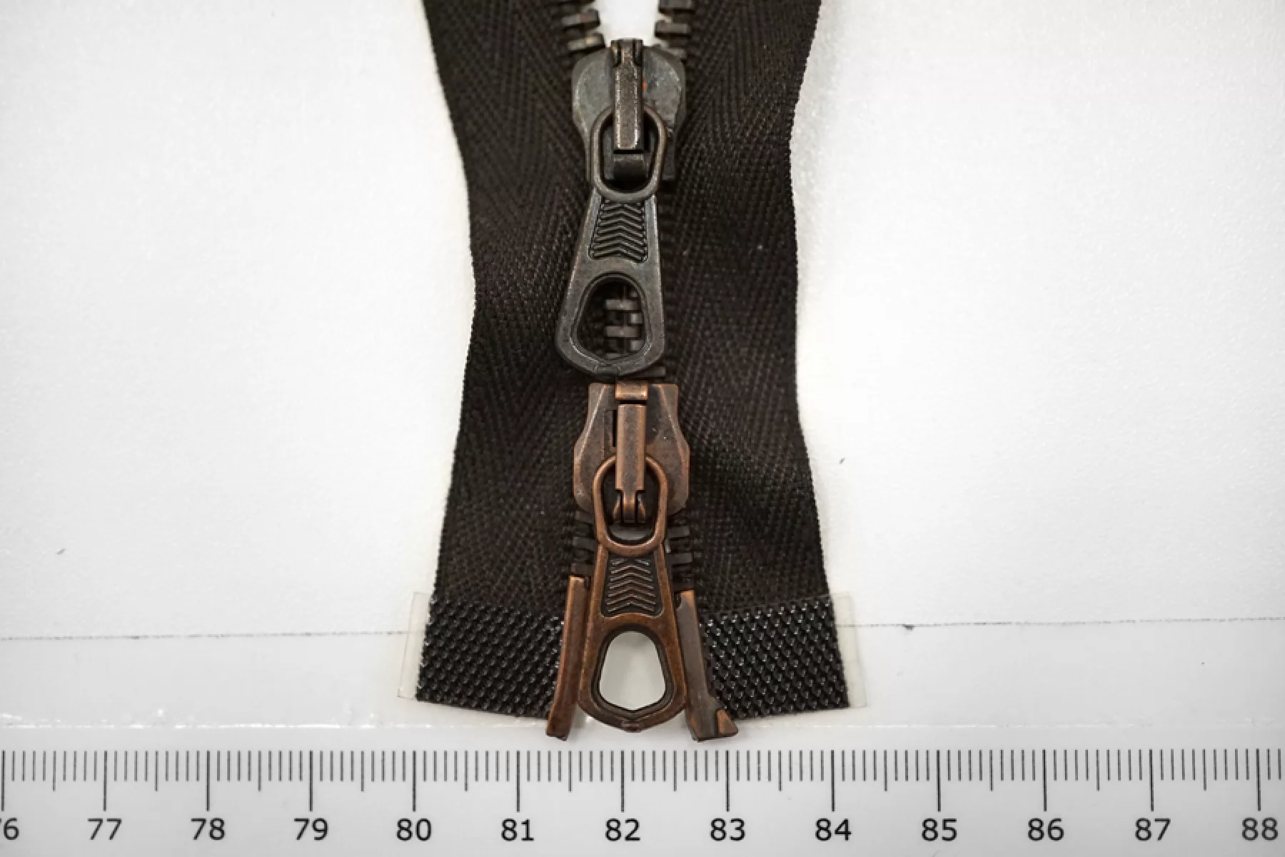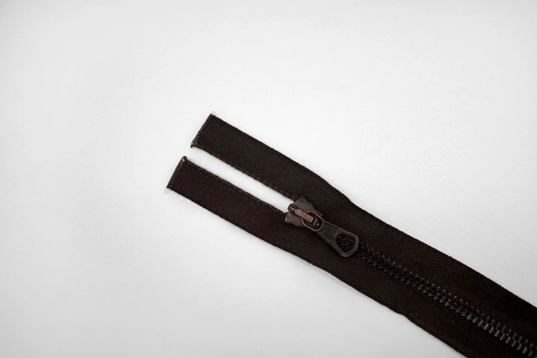 Молния от "Lampo" разъемная, двухзамковая, цвета горького шоколада (очень темный и ненасыщенный), цвет зубцов темнаябронза. Длина 43,5 см.