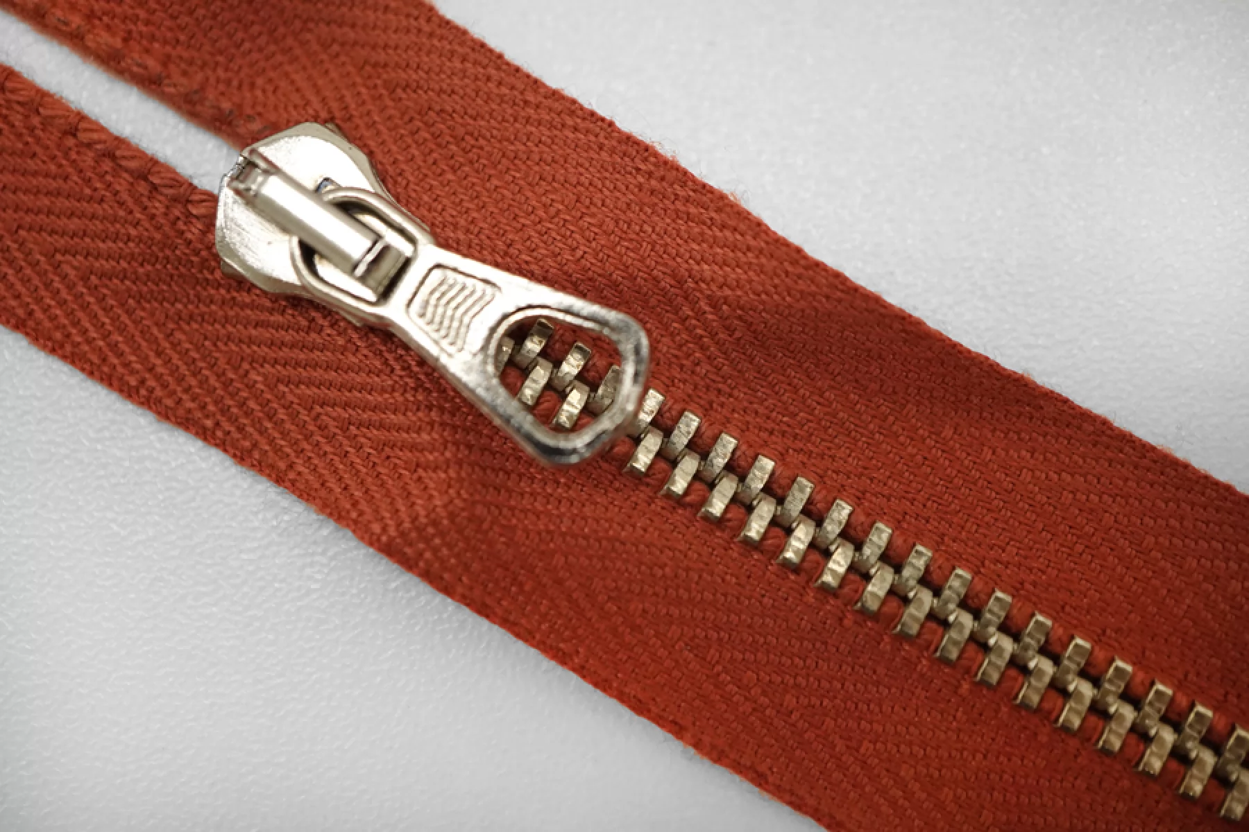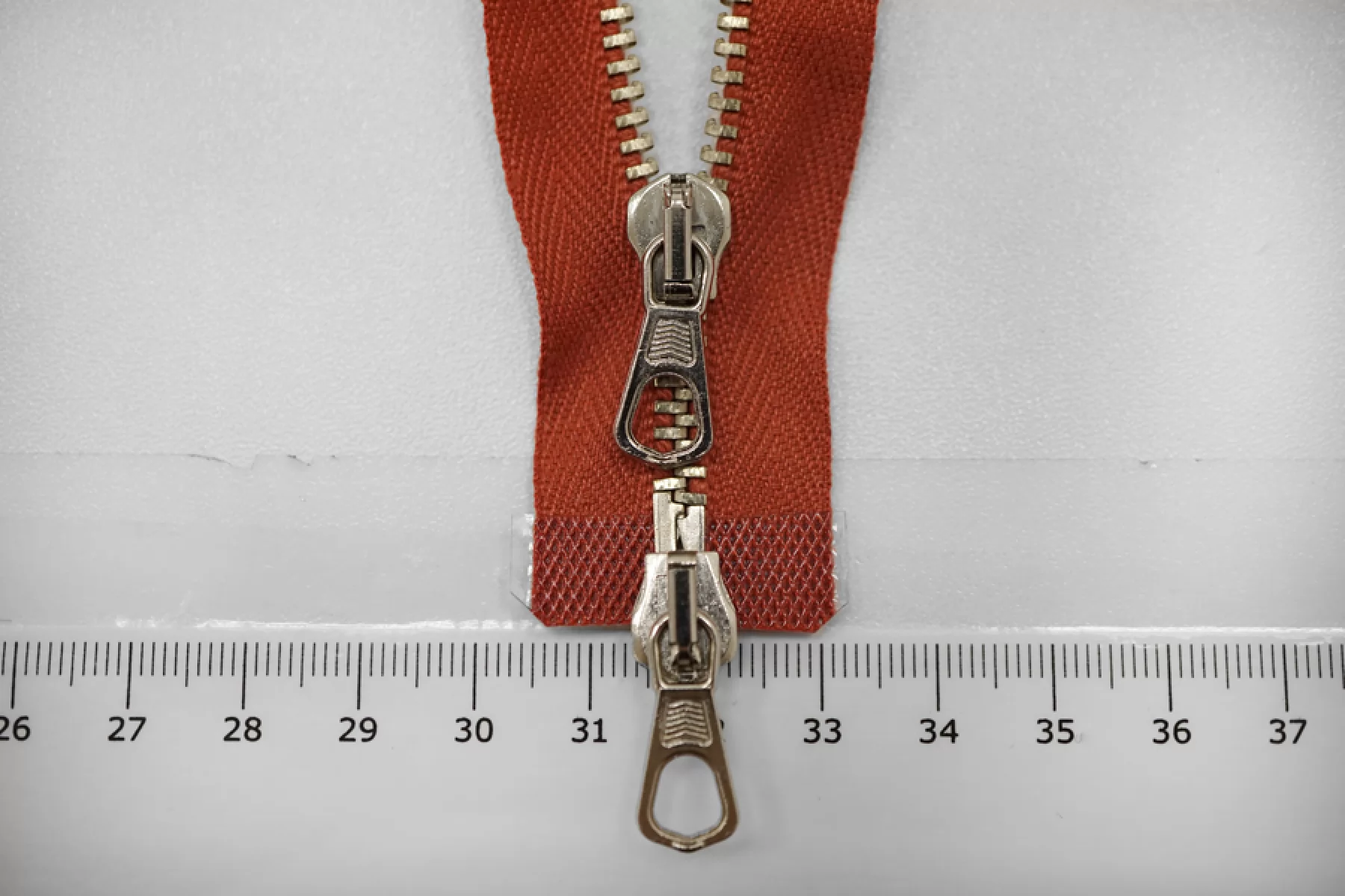 Молния от "Lampo" разъемная, двухзамковая, красного цвета, пуллера и слайдера серебристый. Длина 36 см.