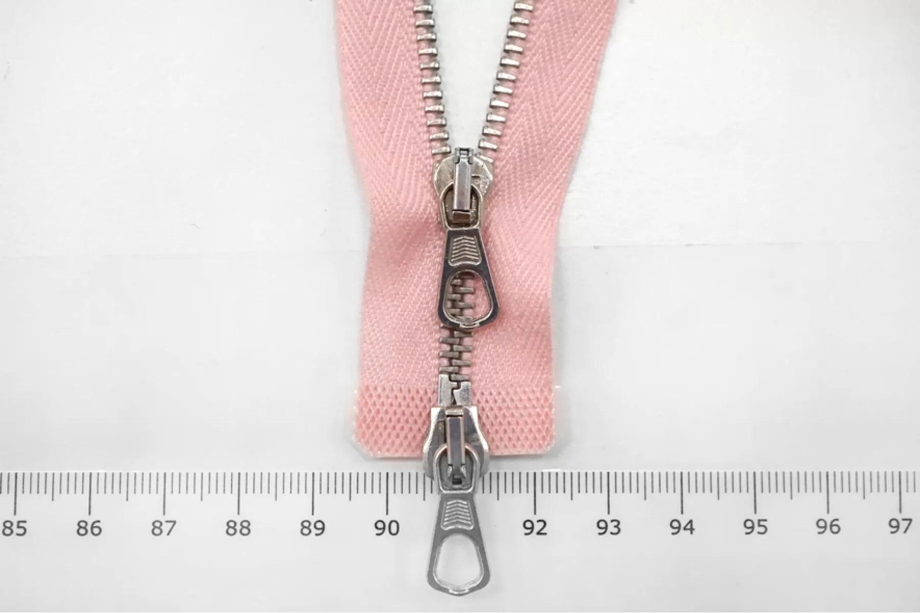 Молния от "Lampo" разъемная, двухзамковая, нежно-розового цвета, пуллера и зубцов серебристый. Длина 25.5 см.
