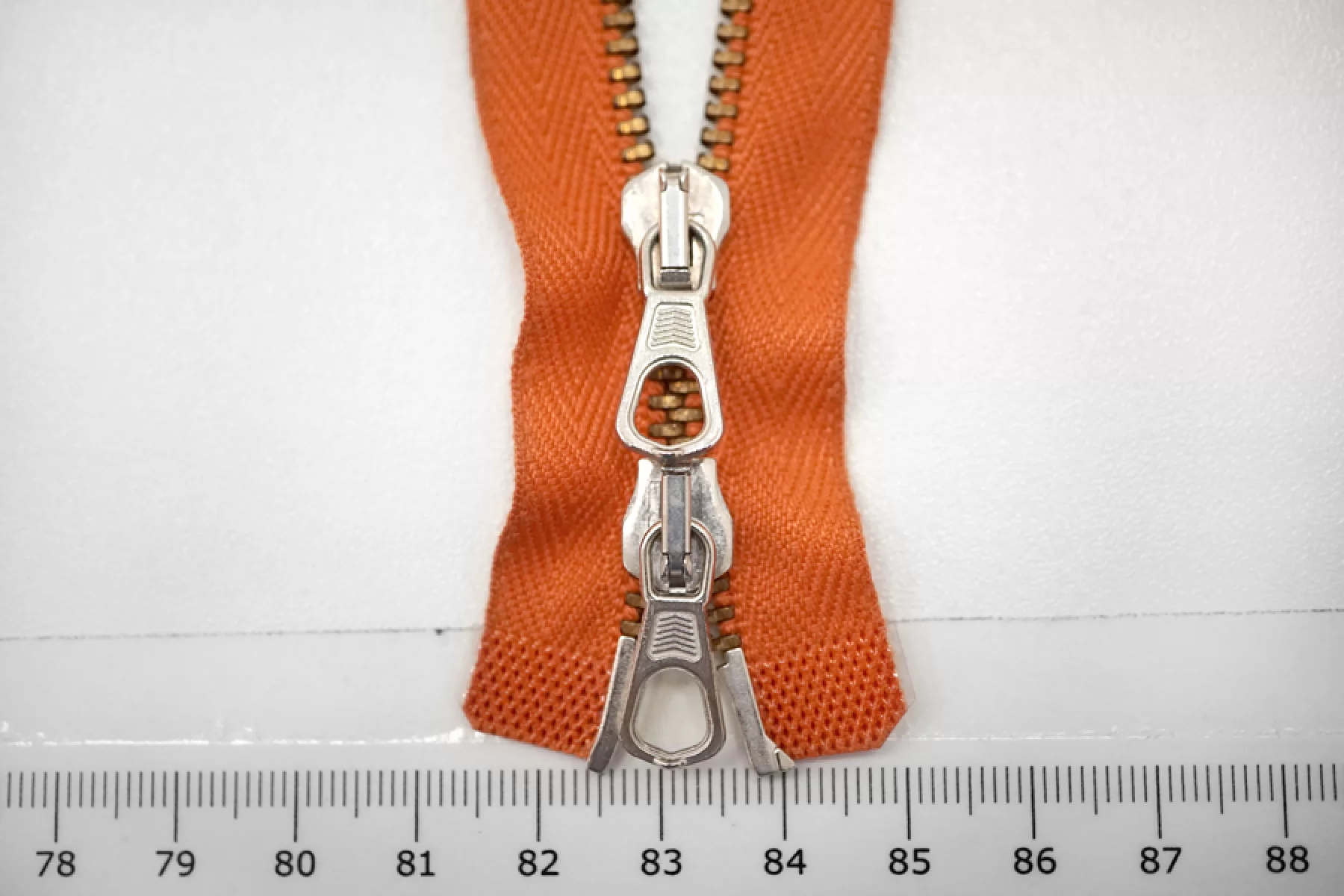 Молния от "Lampo" разъемная, двухзамковая, оранжевого цвета, цвет зубцов золотистый, пуллера и слайдера серебристый. Длина 48,5 см.