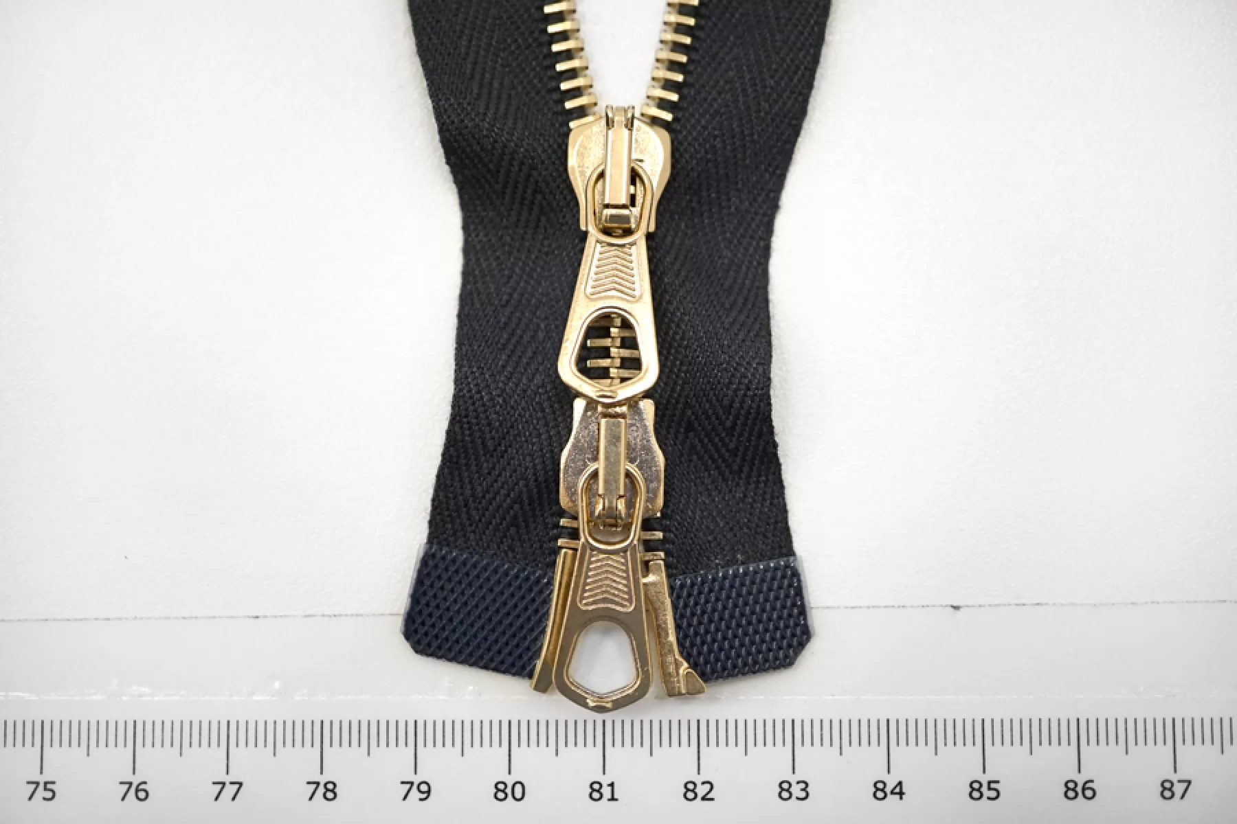 Молния от "Lampo" разъемная, двухзамковая, темно-серого цвета, цвет зубцов золотистый. Длина 59 см.