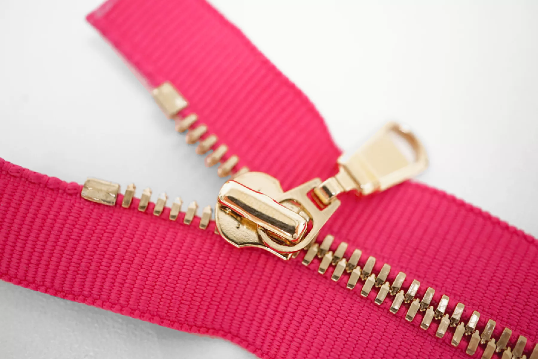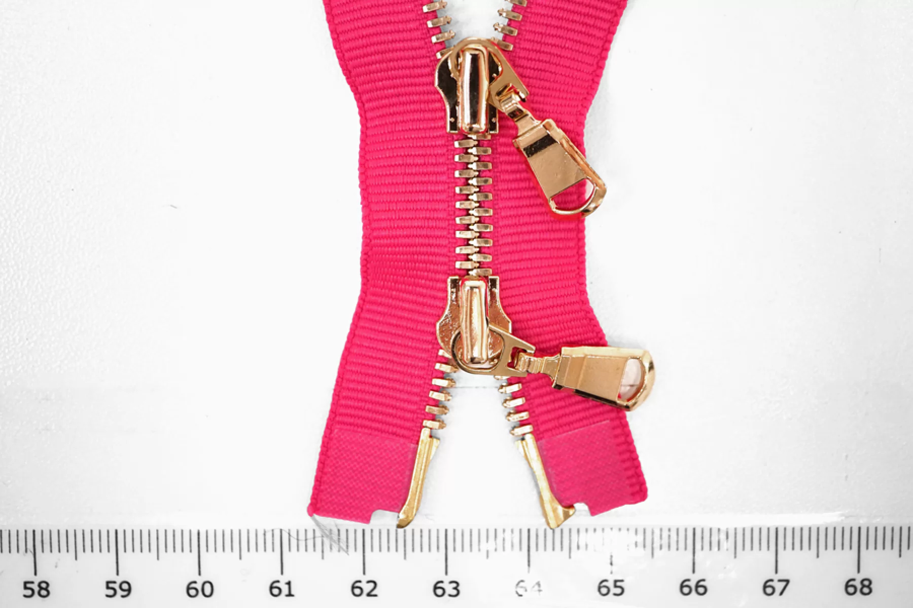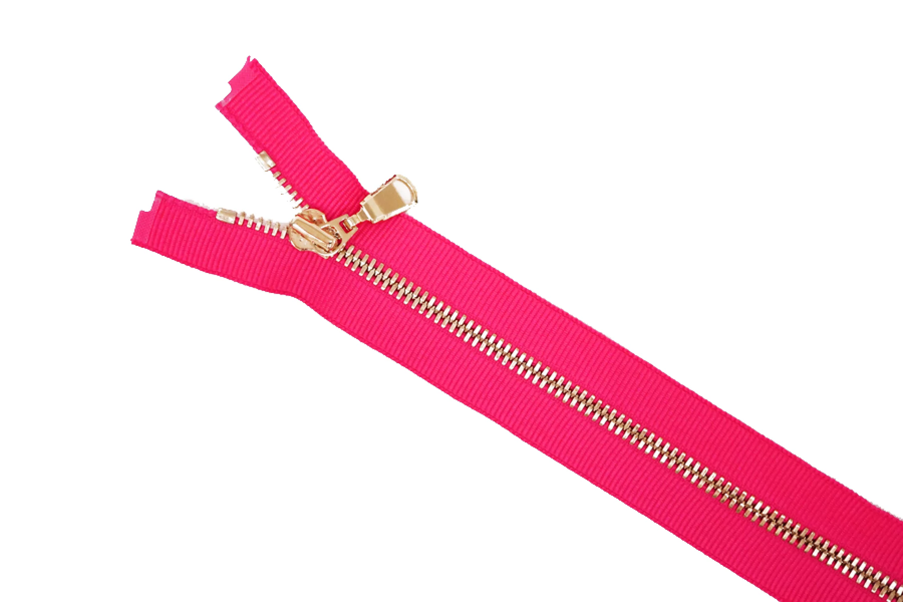 Металлическая молния "Ykk" на репсовой ленте, разъёмная, двухзамковая. Цвет розовый. Цвет зубцов металлический золото, слайдер и пулер металлические золотистого цвета. Длина 35 см. Ширина молнии 2,7 см. Ширина зубцов 5 мм.