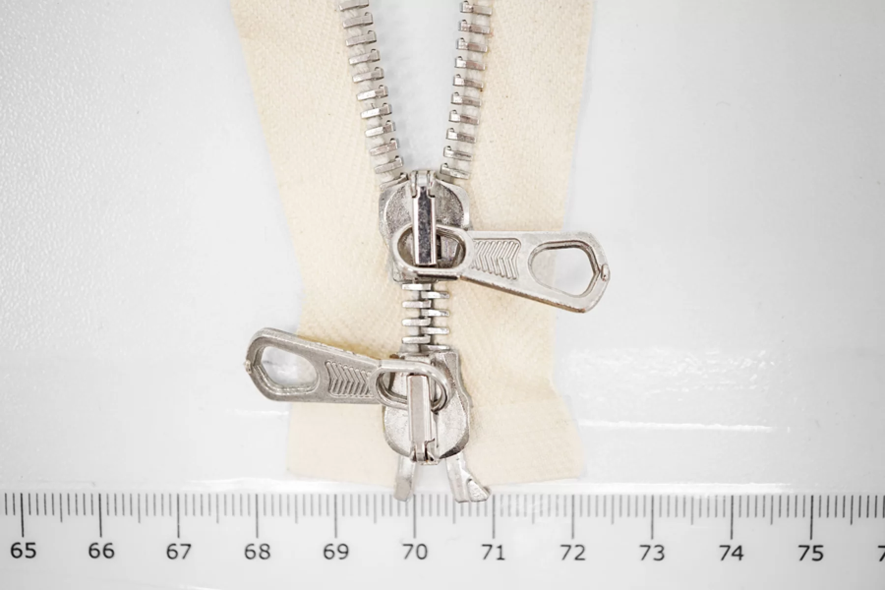 Металлическая молния "Lampo" разъёмная, двухзамочная. Цвет белый. Цвет зубцов никель, слайдер и пулер металлические серебристого цвета. Длина 52 см. Ширина молнии 3,3 см. Ширина зубцов 6 мм.