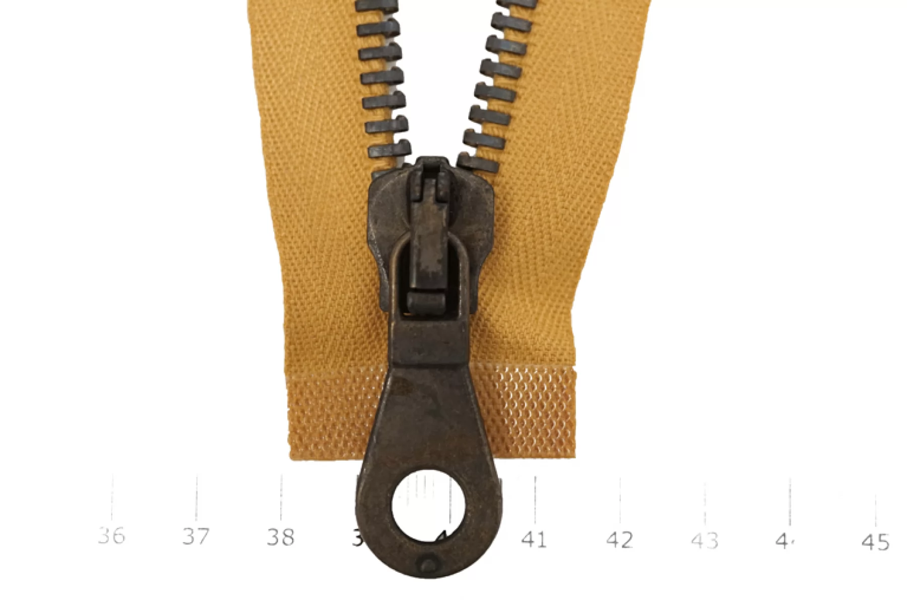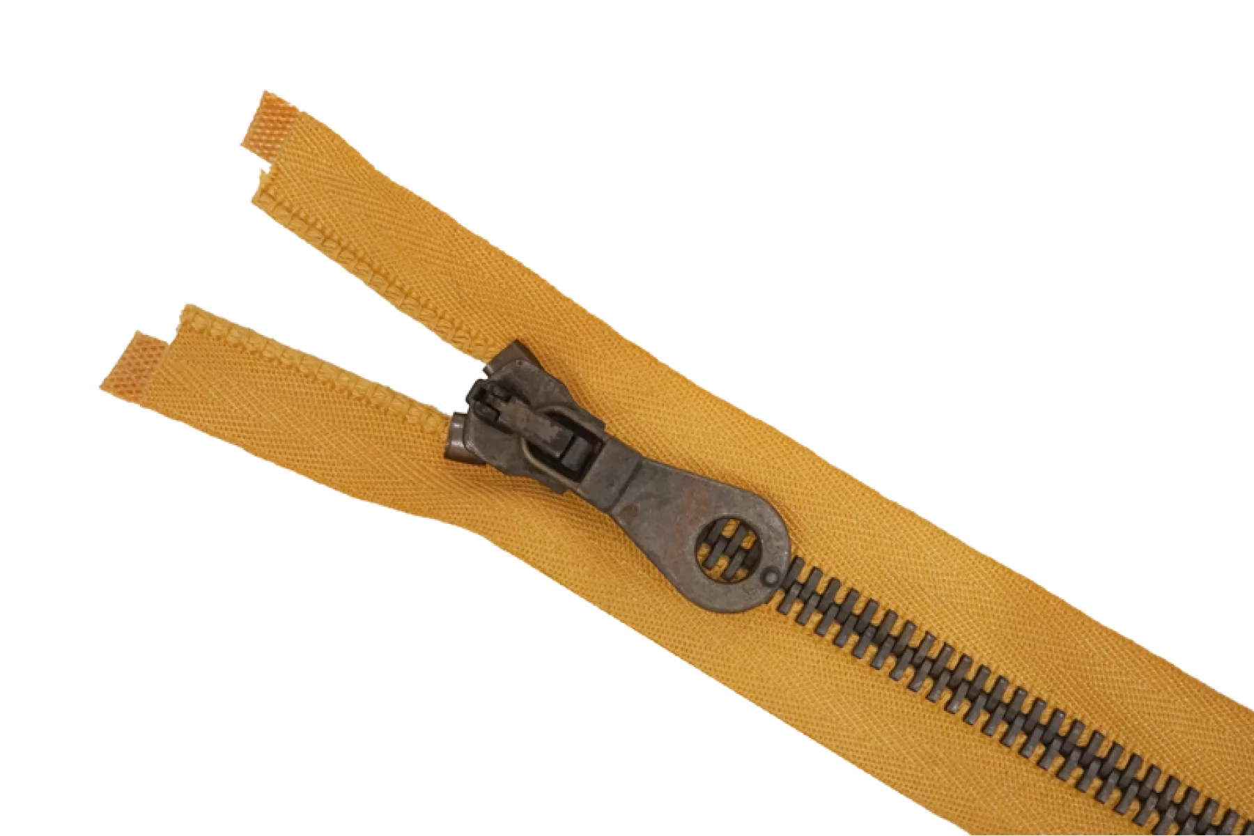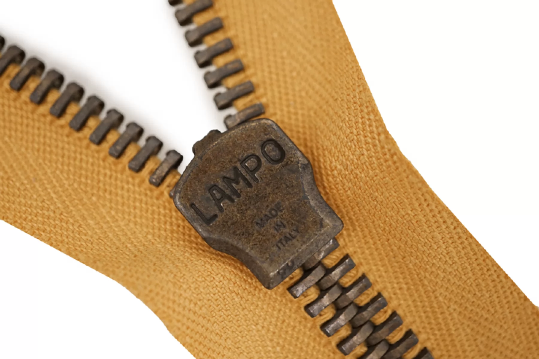 Молния от "Lampo" разъемная, однозамковая, горчичного цвета, цвет зубцов темный никель, цвет пуллера и слайдера также выполнены из никеля . Длина 68 см. Ширина молнии 3,4 см, ширина зубцов 8 мм.