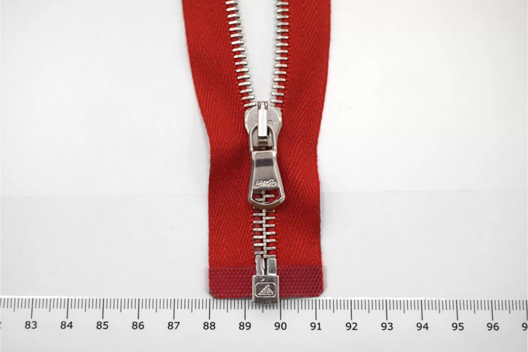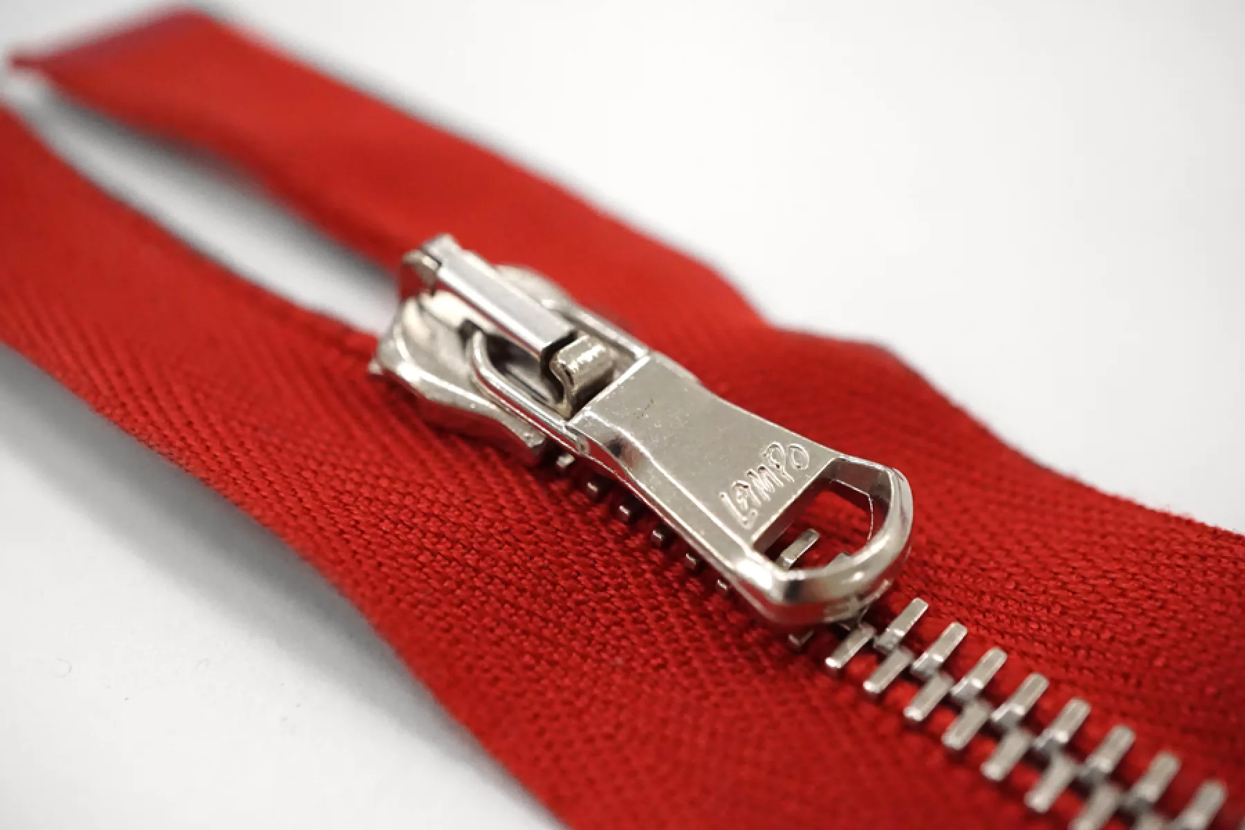 Молния металлическая от "Lampo" разъемная, красного цвета, цвет пуллера и зубцов серебристый. Длина 36 см.