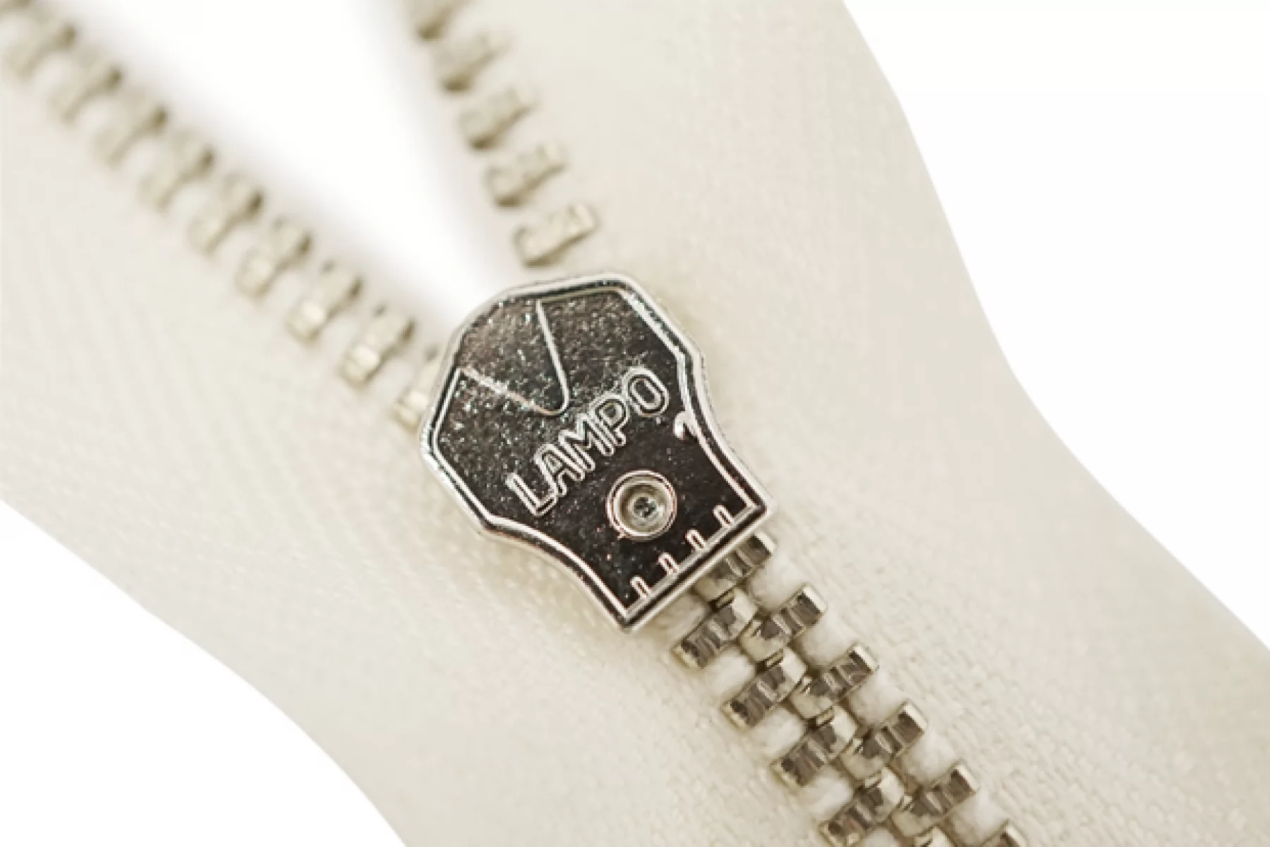 Молния от "Lampo" разъемная, двухзамковая, молочная, цвет зубцов серебряный, цвет пуллера и слайдера также серебряного цвета. Длина 45 см. Ширина молнии 2,6 см, ширина зубцов 4 мм.