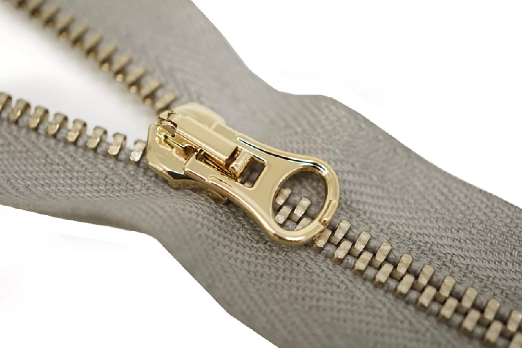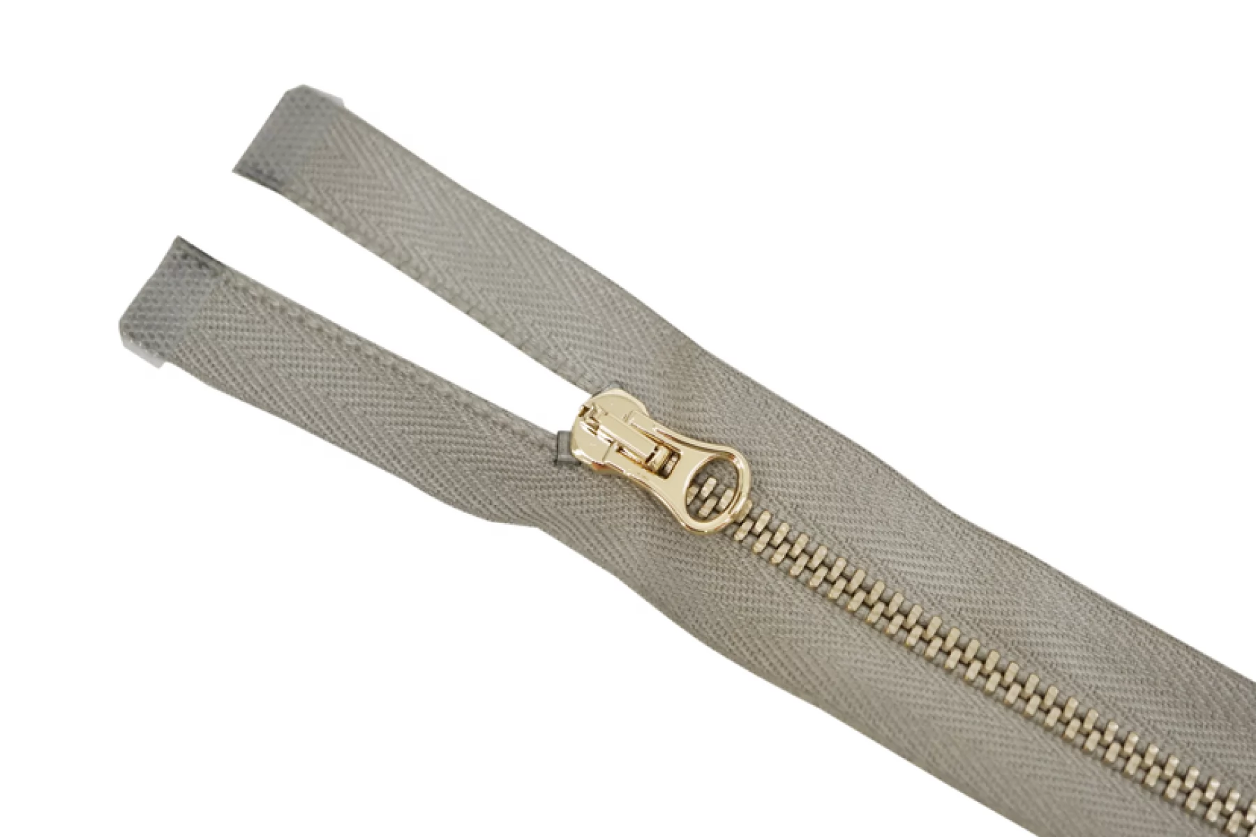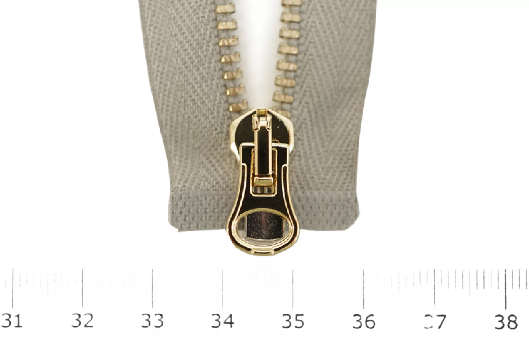 Молния от Итальянского производителя "Lampo" разъемная, однозамковая, серого цвета, цвет зубцов латунь, цвет пуллера и слайдера золотые. Длина 50 см. Ширина молнии 2,6 см, ширина зубцов 4 мм.