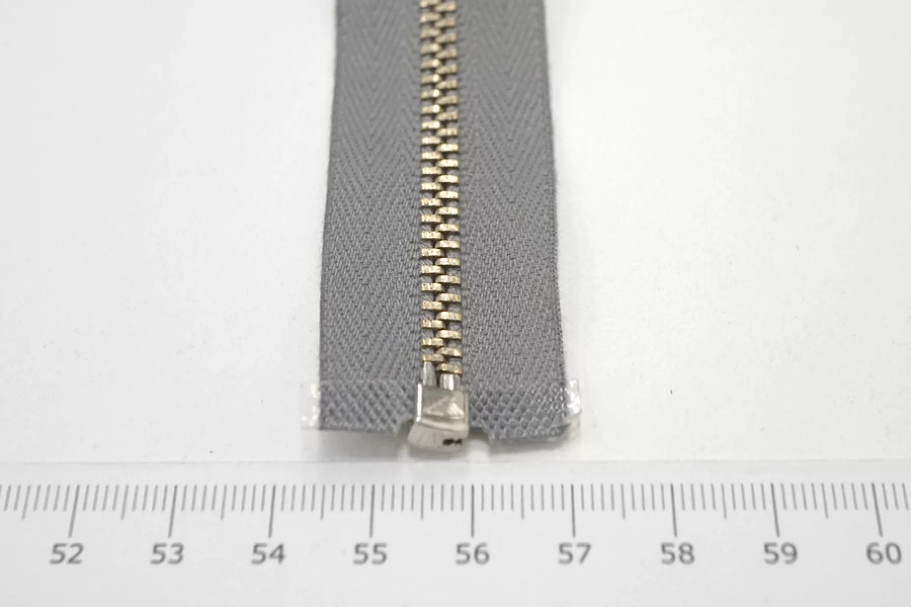 Молния от "Lampo" разъемная, серая, цвет зубцов светло-золотистый, слайдер и пулер серебристый. Длина 52 см.