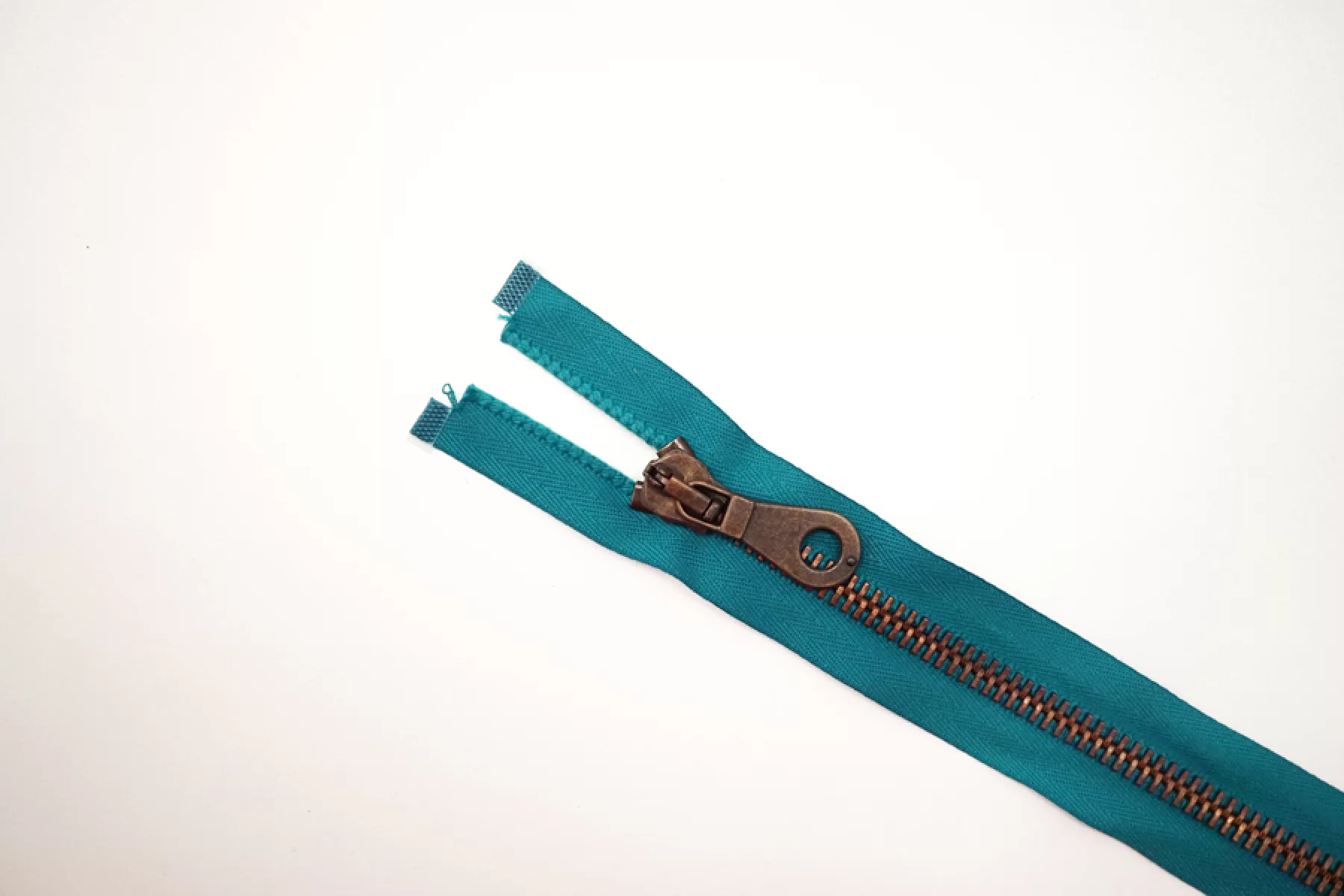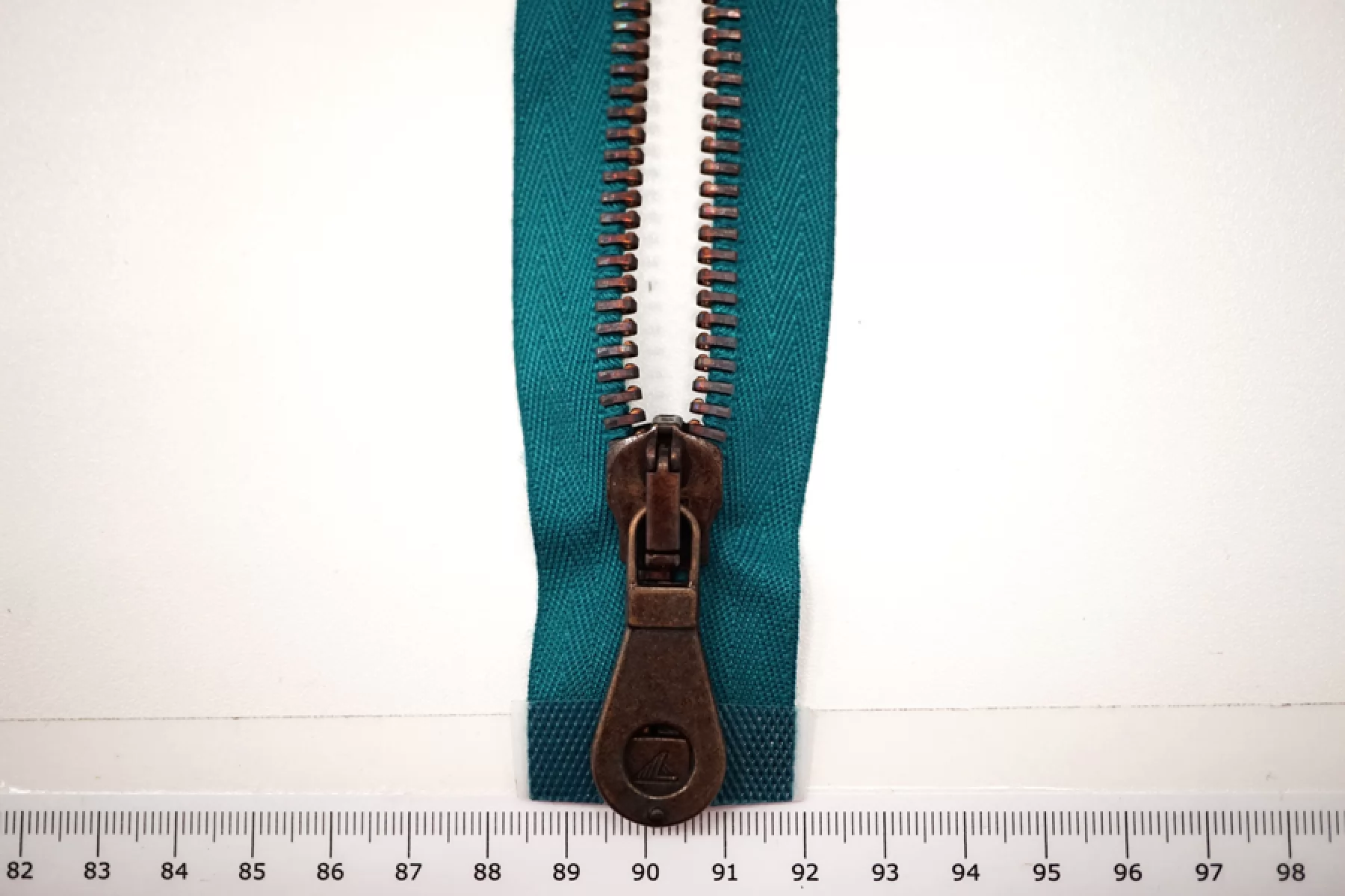 Молния от "Lampo" разъемная, темно-бирюзовая, цвет зубцов бронзовый. Длина 60 см.