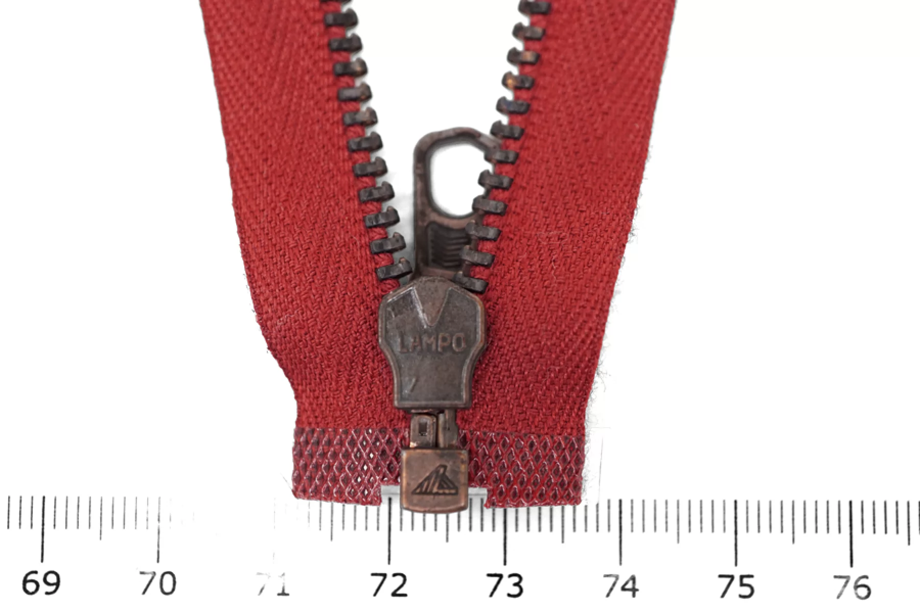 Молния от "Lampo" разъемная, темно-красная, цвет зубцов бронзовый. Длина 38,5 см. Ширина молнии 5 см. Ширина зубцов 26 мм.