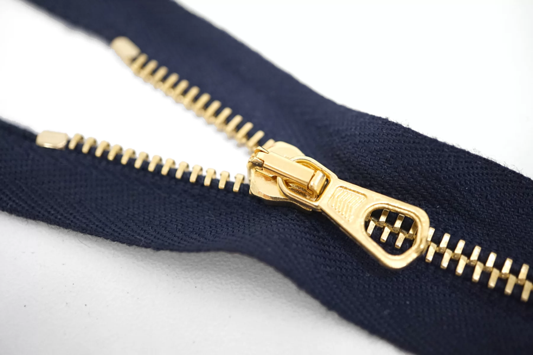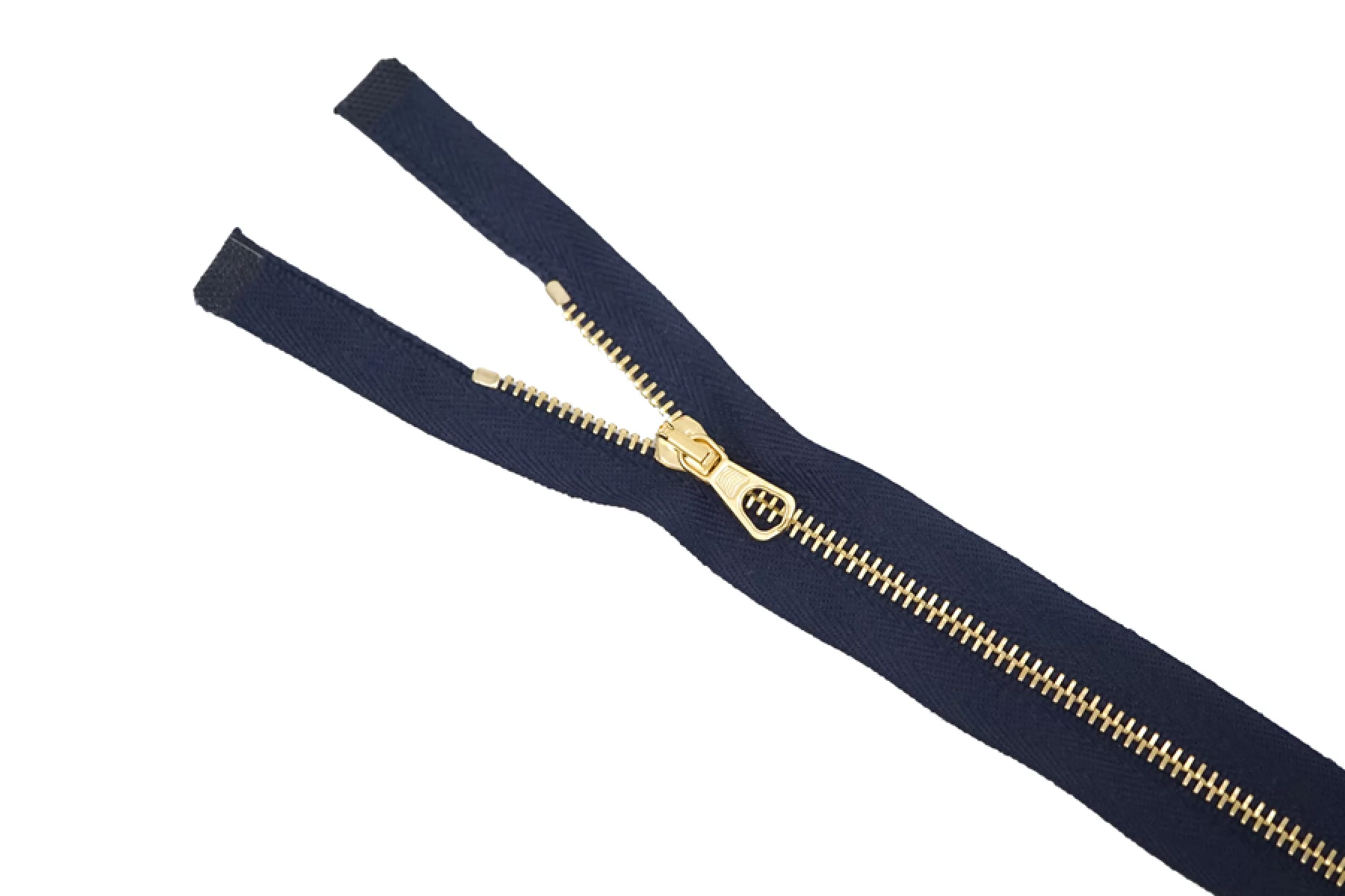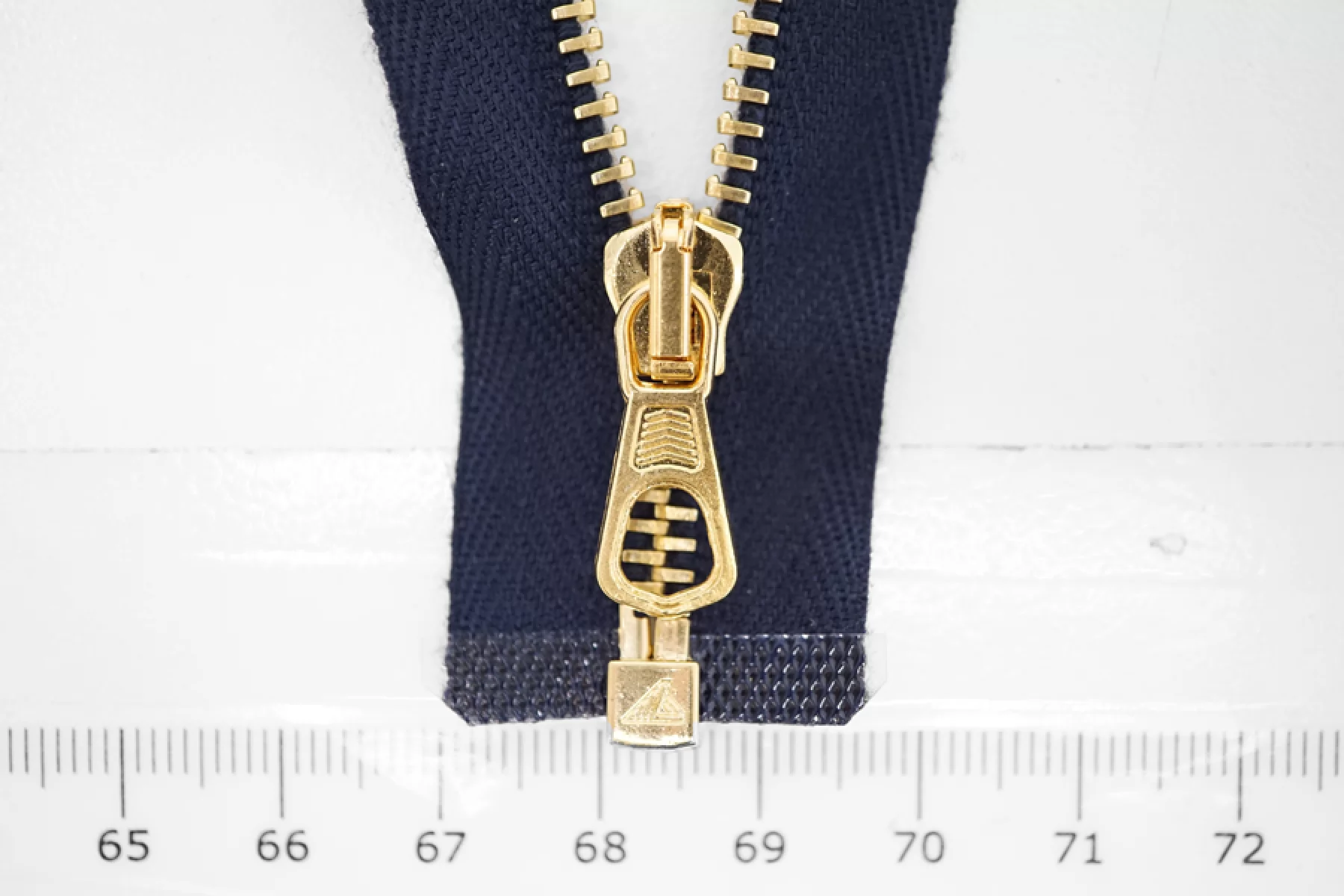 Металлическая молния "Lampo" разъёмная, один замок. Цвет темно-синий. Цвет зубцов металлический золотистый, слайдер и пулер металлические под золото. Длина 45 см. Ширина молнии 2,7 см. Ширина зубцов 5 мм.