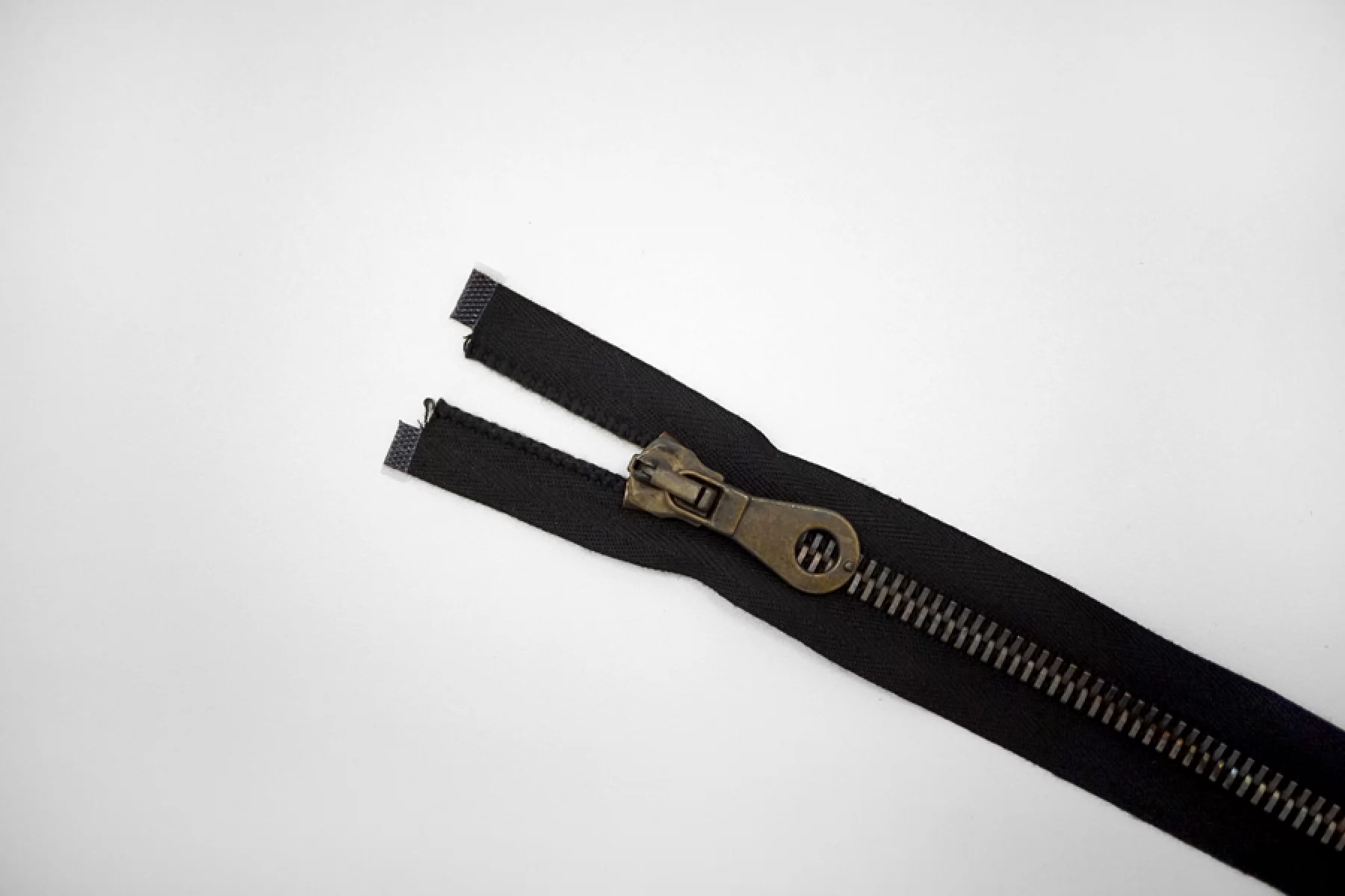 Молния от "Lampo" разъемная, однозамковая, черного цвета, цвет зубцов бронза. Длина 59,5 см.