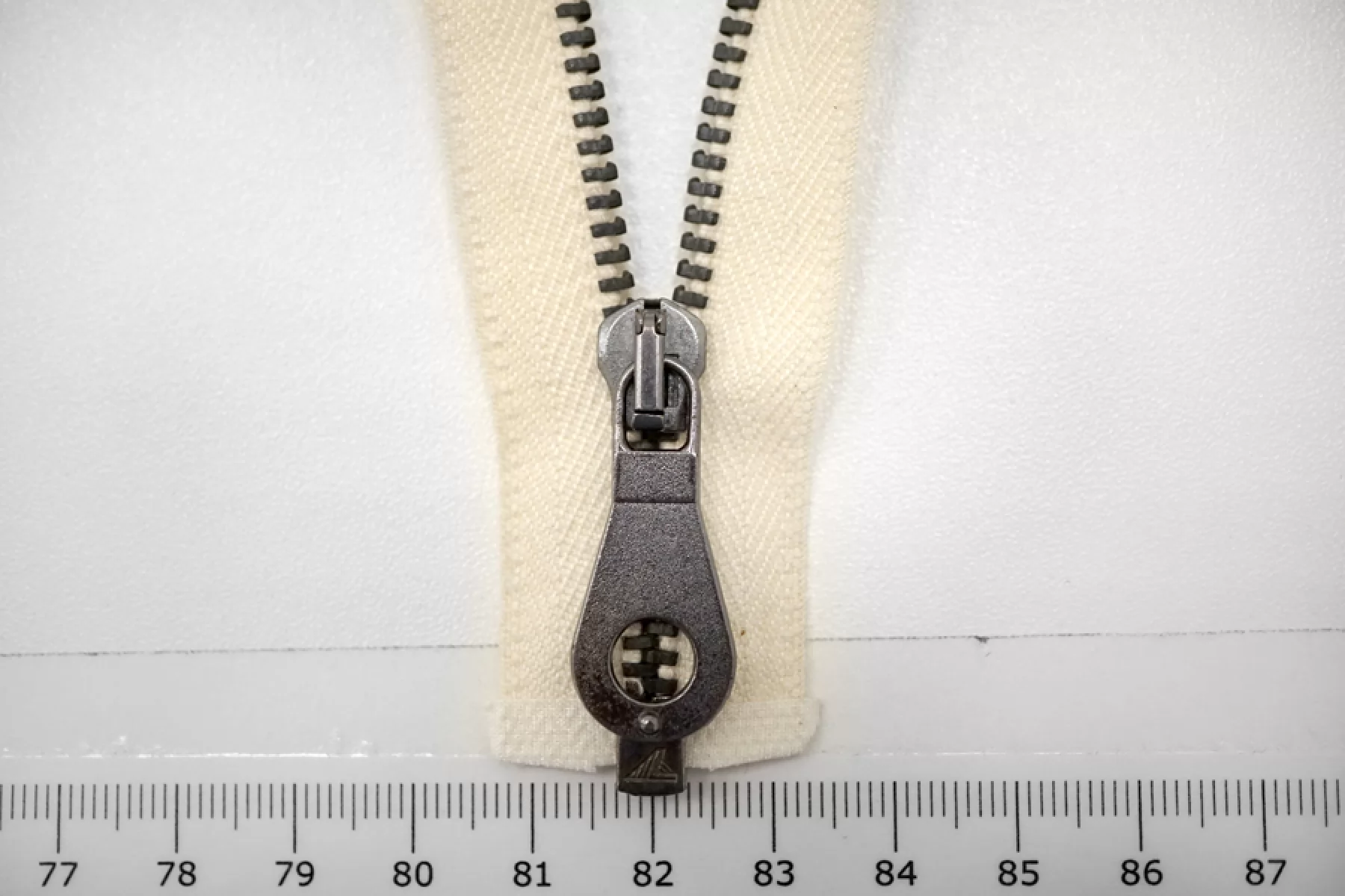 Молния от "Lampo" разъемная, молочная, цвет зубцов и крупного пуллера - темный никель. Длина 26 см.