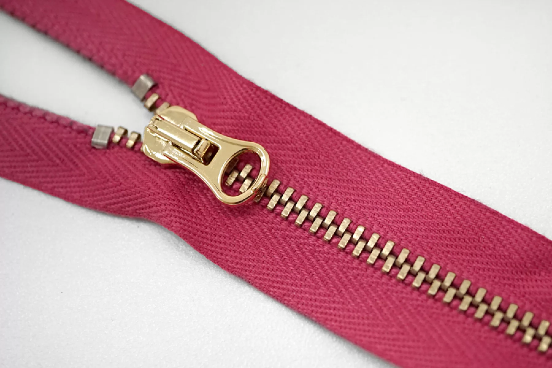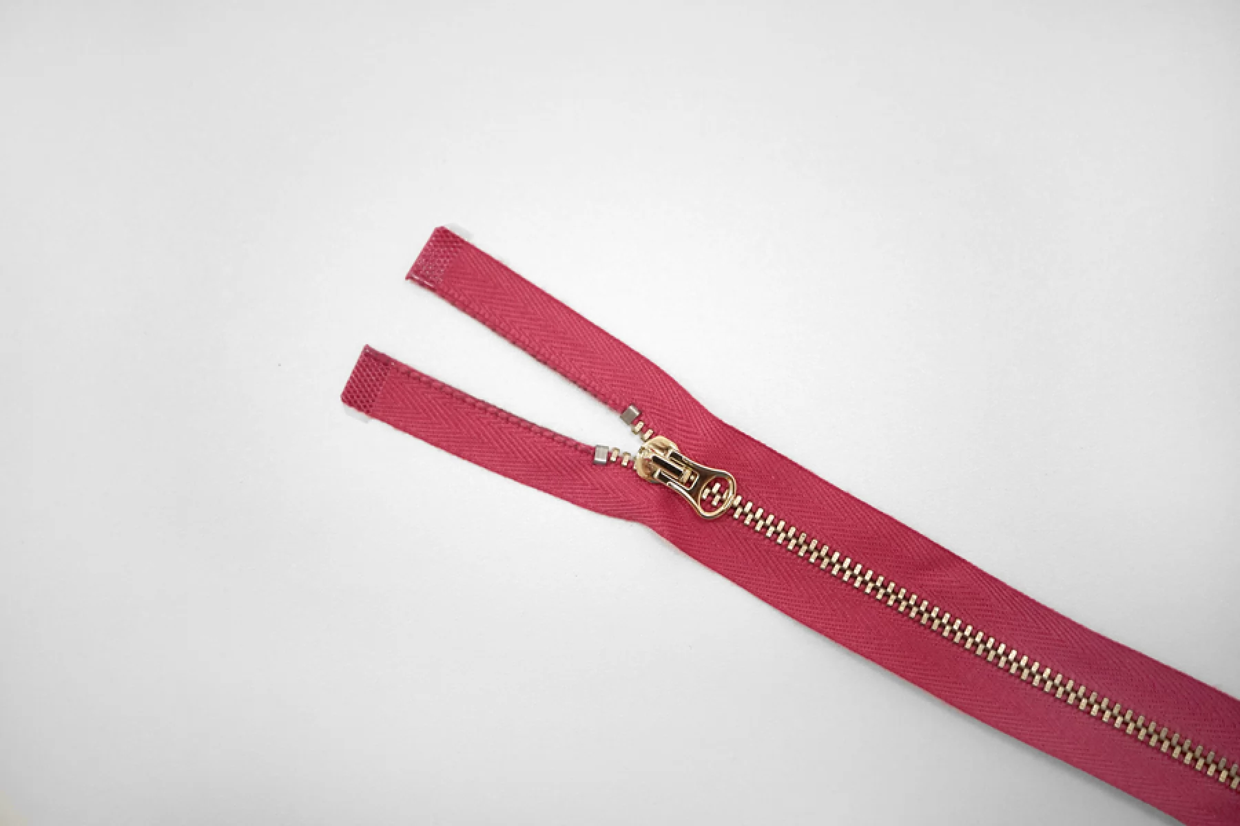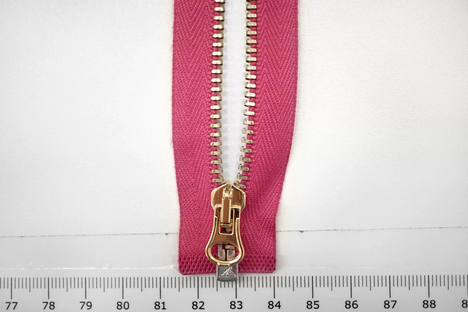 Молния от "Lampo" разъемная, однозамковая, розового цвета, цвет зубцов золотистый. Длина 41 см.