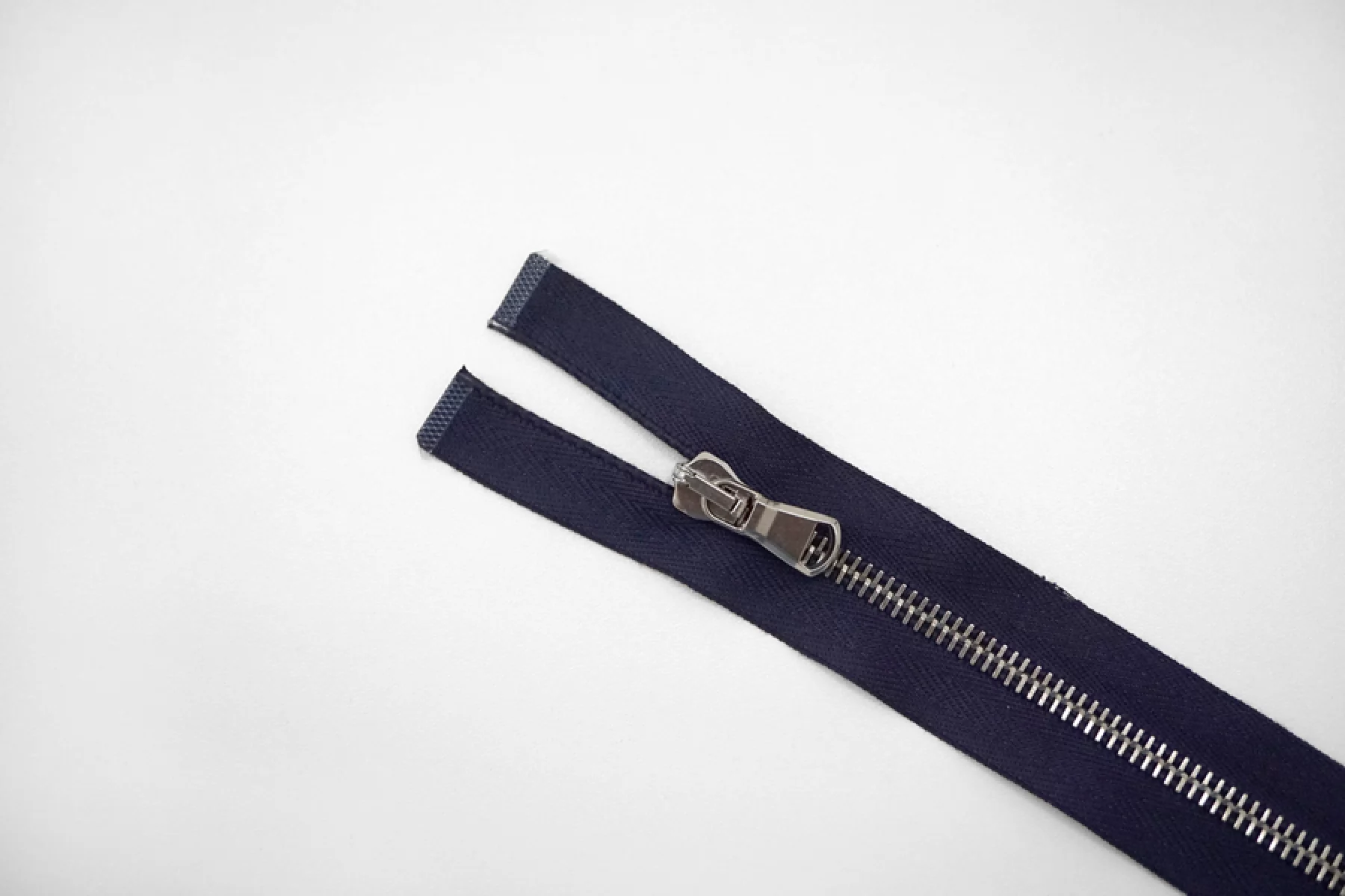 Молния от "Lampo" разъемная, однозамковая, темно-синего цвета, цвет зубцов серебристый. Длина 24 см.