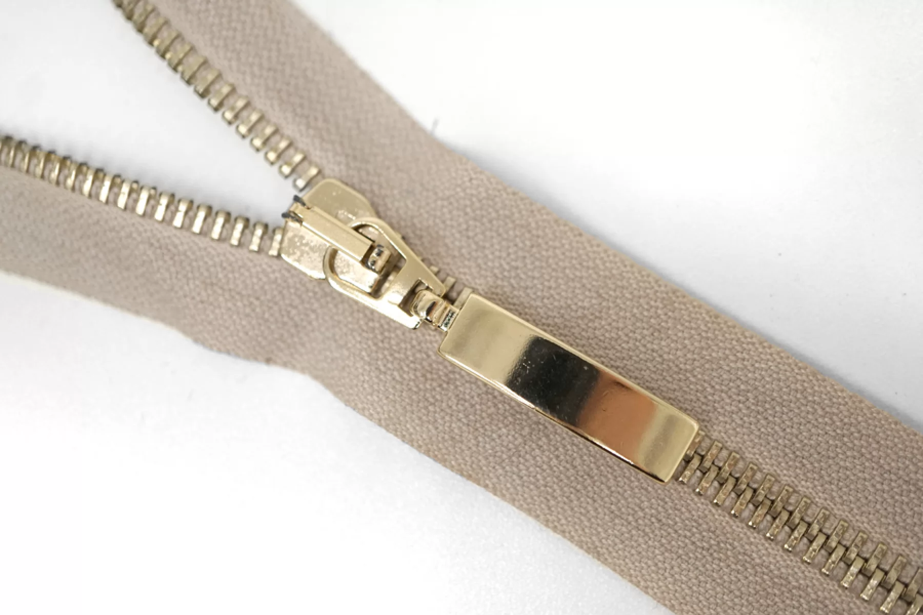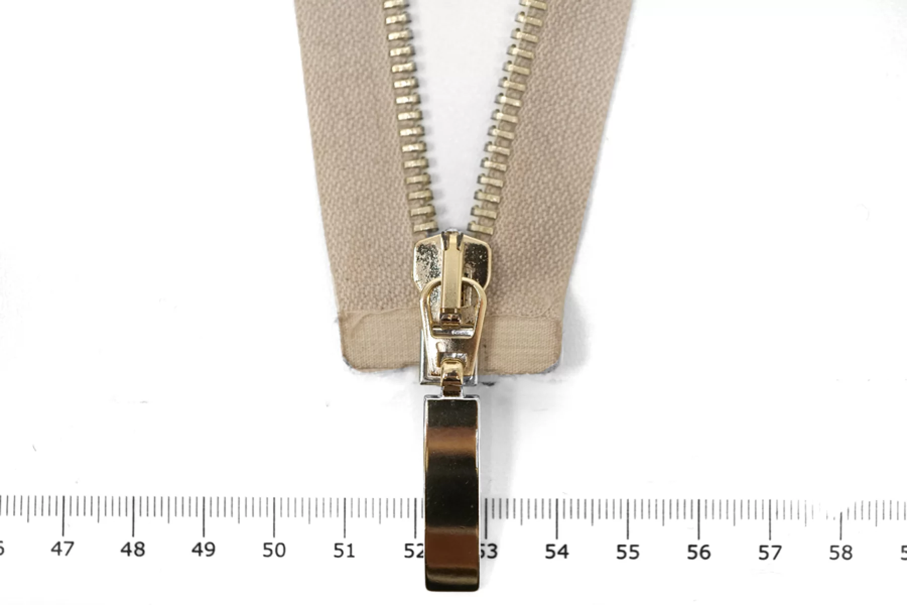 Итальянская молния разъёмная, однозамочная, пудрово-серого оттенка. Материал зубцов, слайдера и пулера - металл, цвет - золотистый. Длина 53,5 см. Ширина молнии 3 см. Ширина зубцов 6 мм.