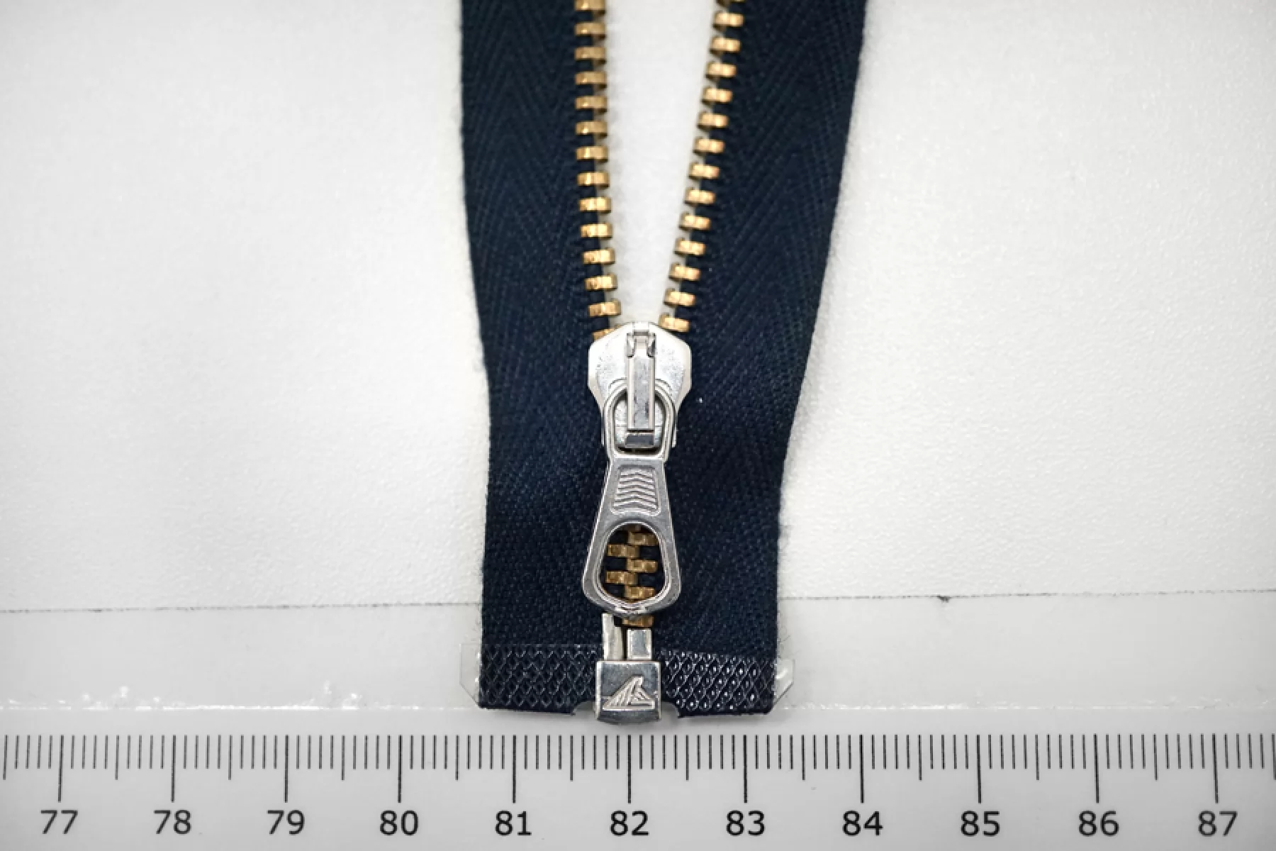 Молния от "Lampo" разъемная, однозамковая , темно-синего цвета, цвет зубцов золотистый, цвет пуллера и слайдера серебристый. Длина 56 см.