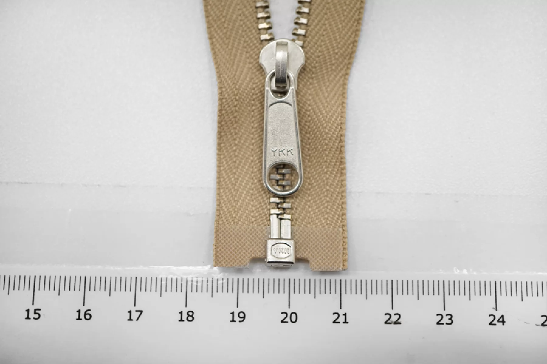 Молния от "YKK" разъемная , бежево-песочного цвета, пуллера и слайдера серебристый. Длина 44,5 см.
