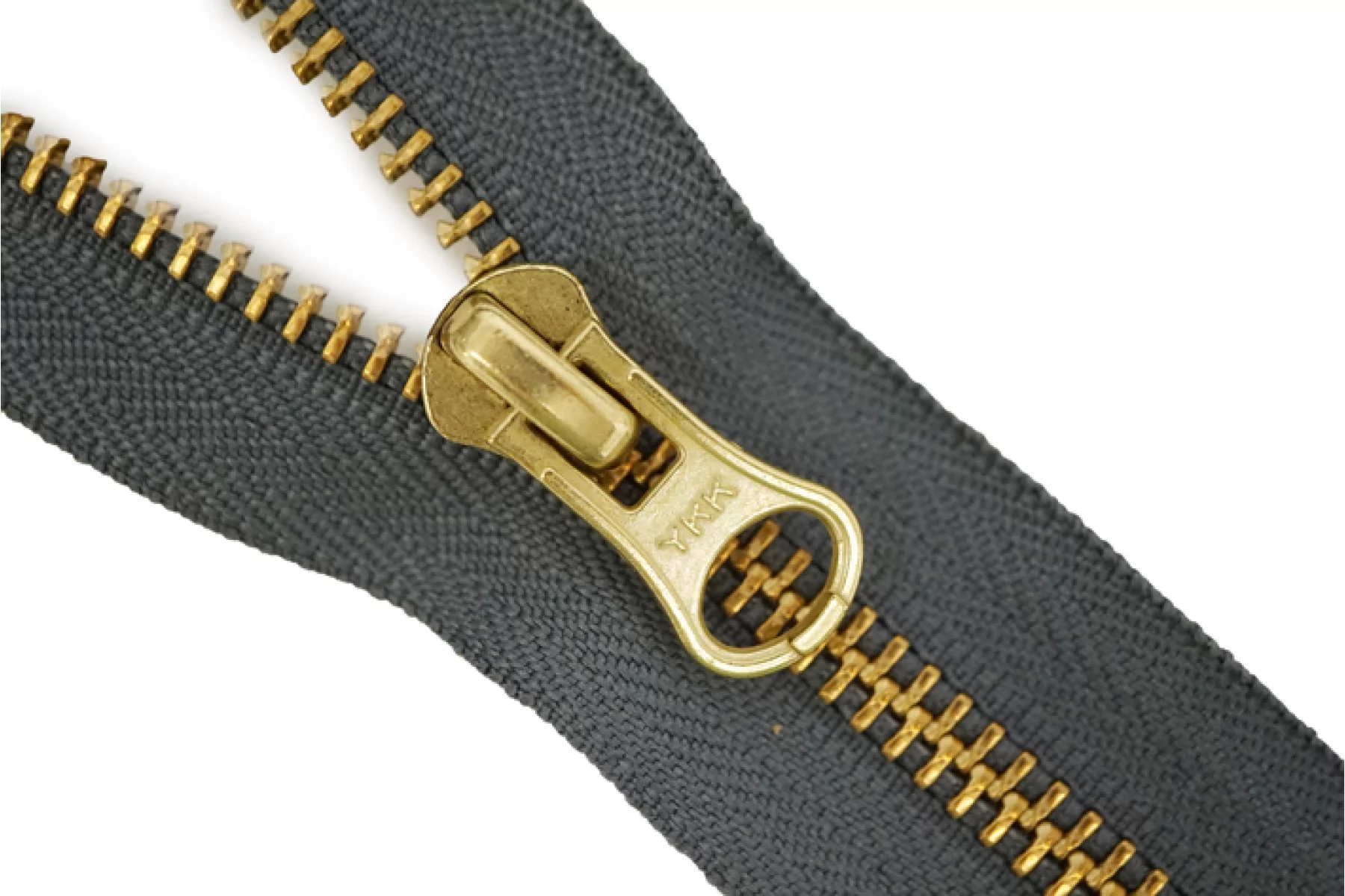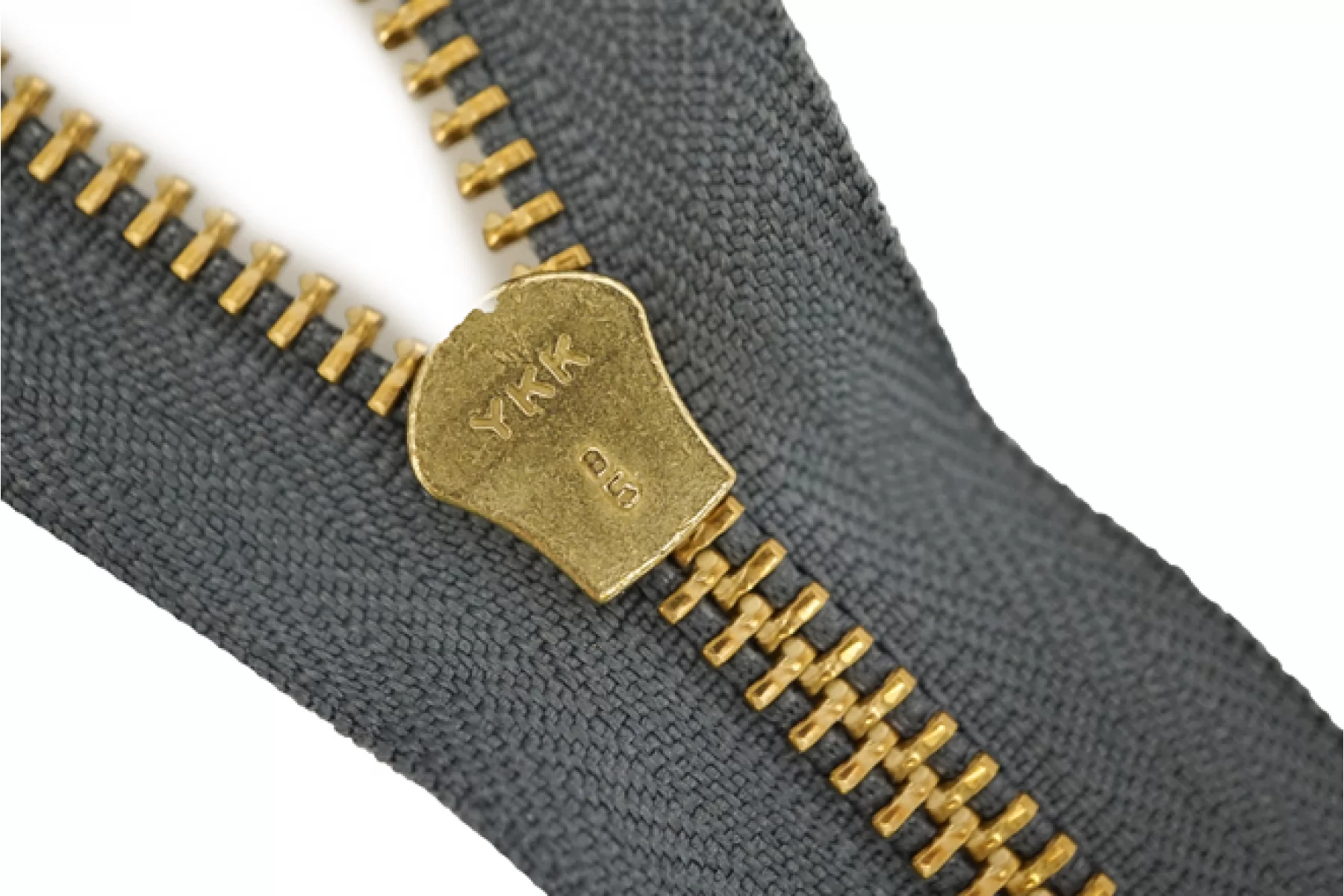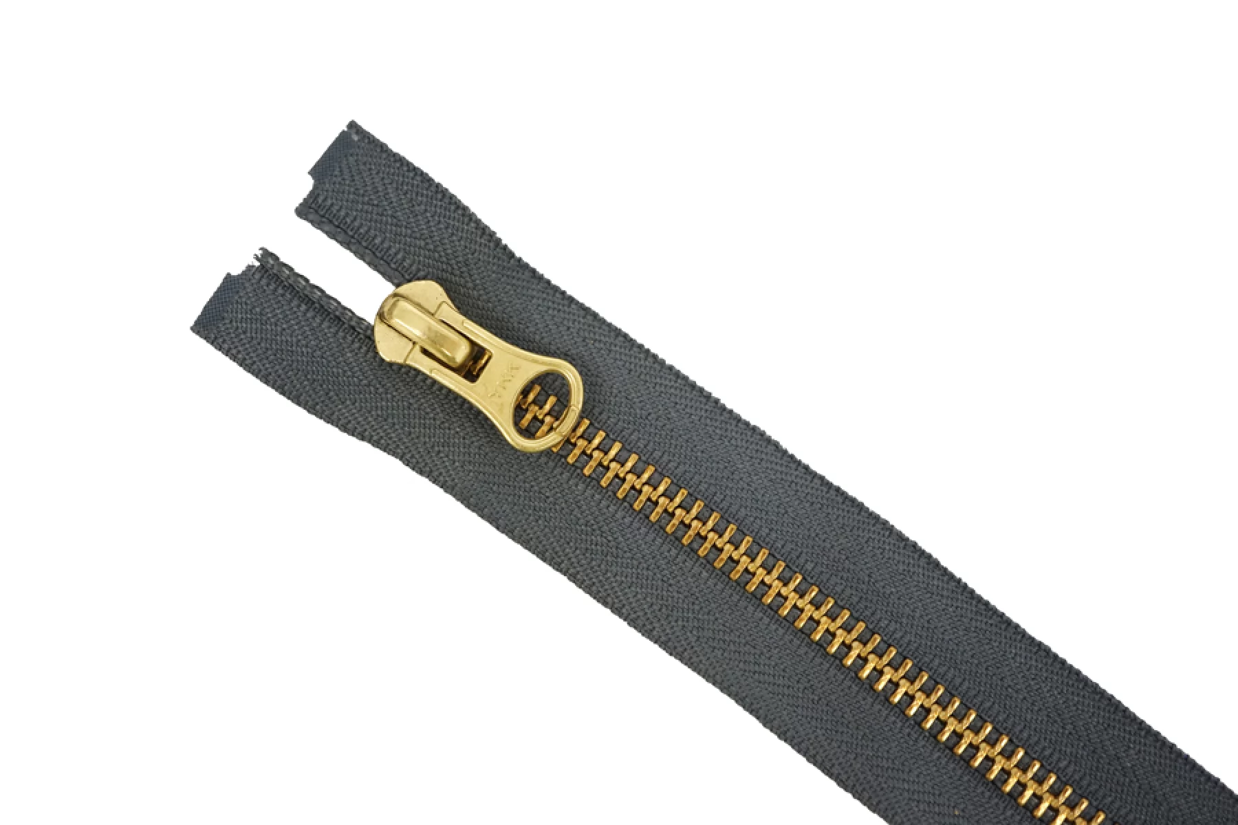 Молния от Японского производителя "Ykk" разъемная, однозамковая, серого цвета с синим подтоном, цвет зубцов - латунь, пуллер и слайдер - золотого цвета. Ширина молнии - 3,0 см, ширина зубцов 6 мм. Длина молнии - 37 см.