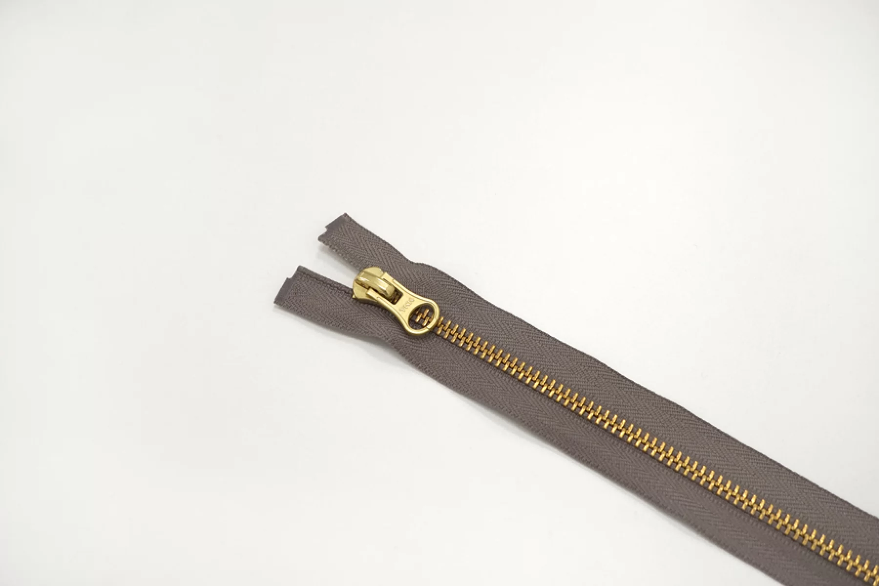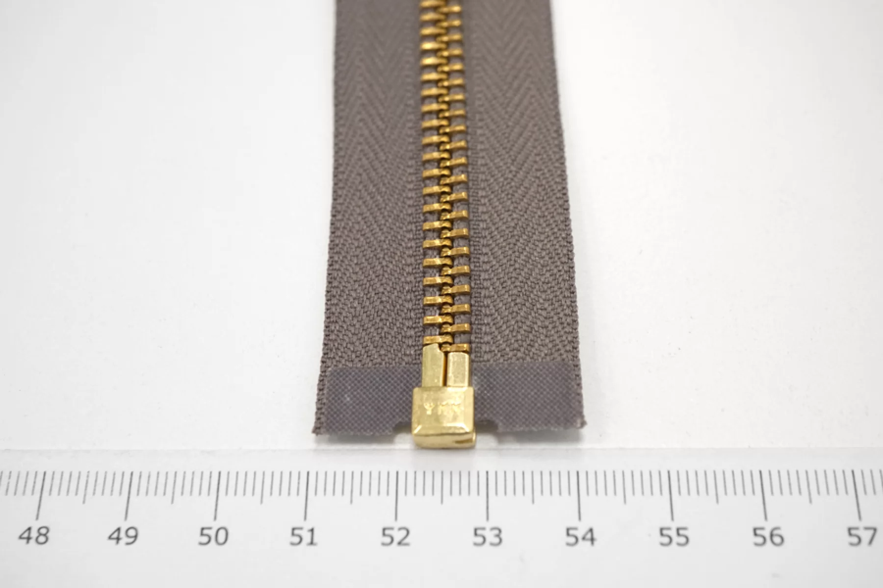 Молния от YKK разъемная, серая, цвет зубцов золотистый. Длина 69 см.
