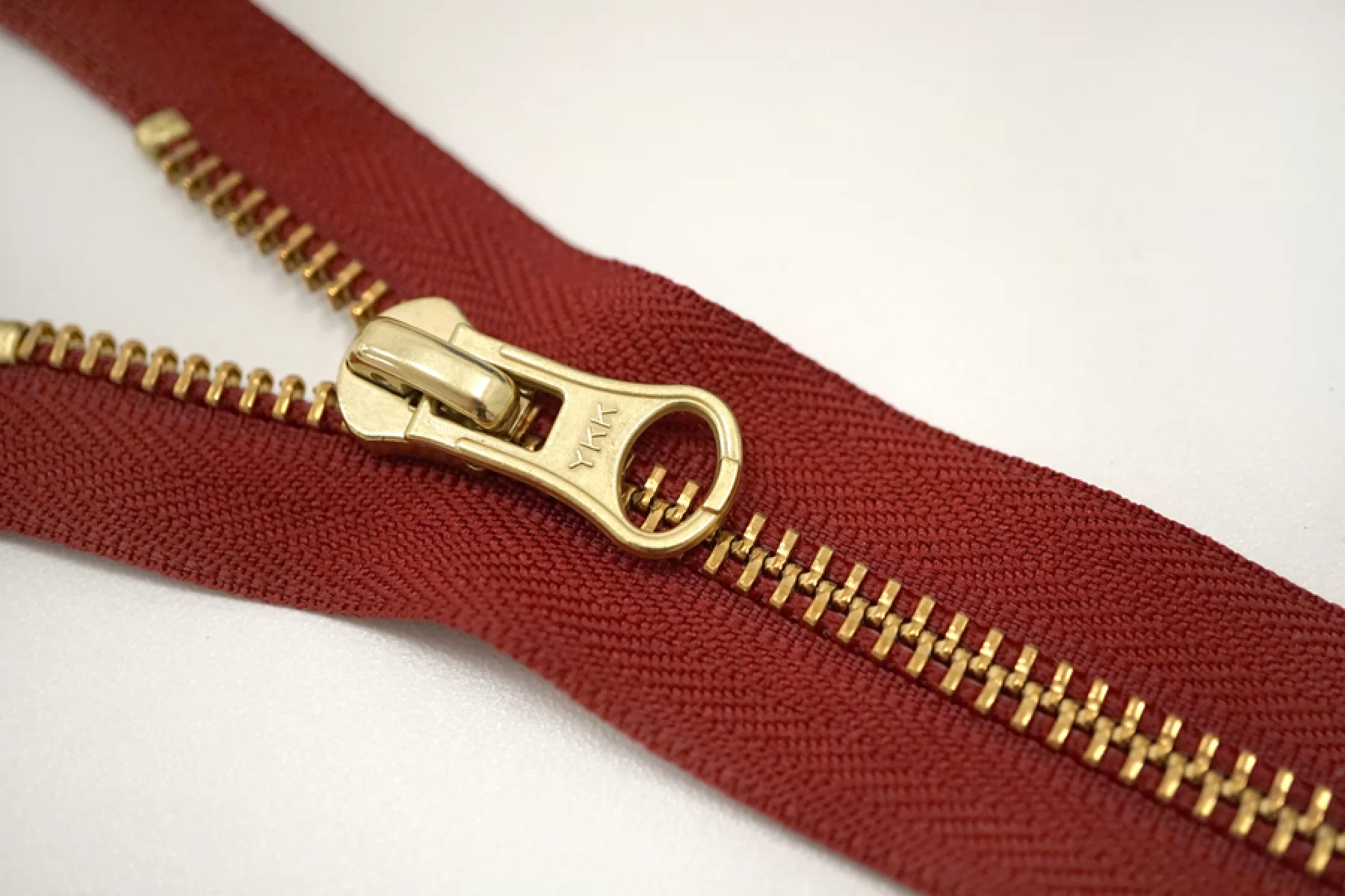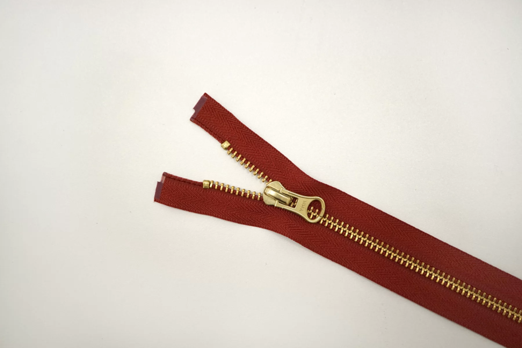 Молния от YKK разъемная, ягодная, цвет зубцов золотистый. Длина 70 см.