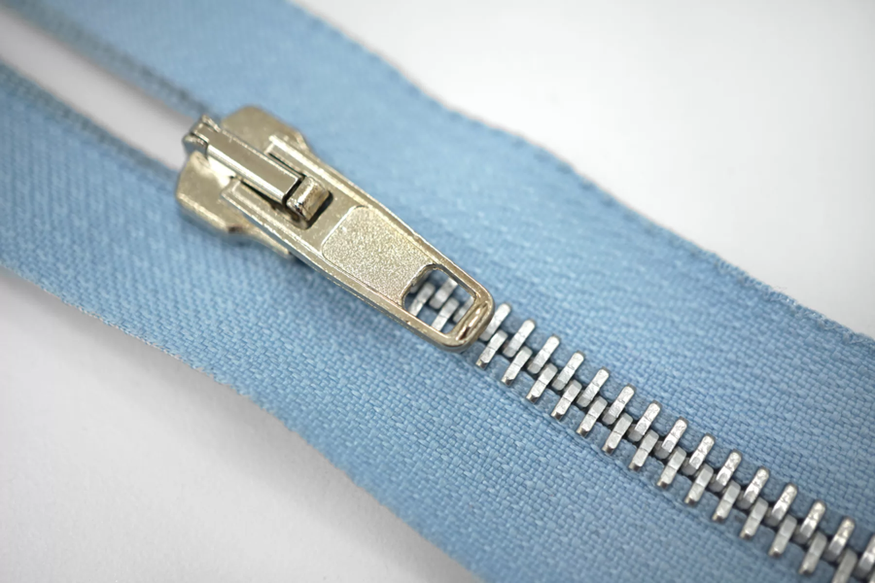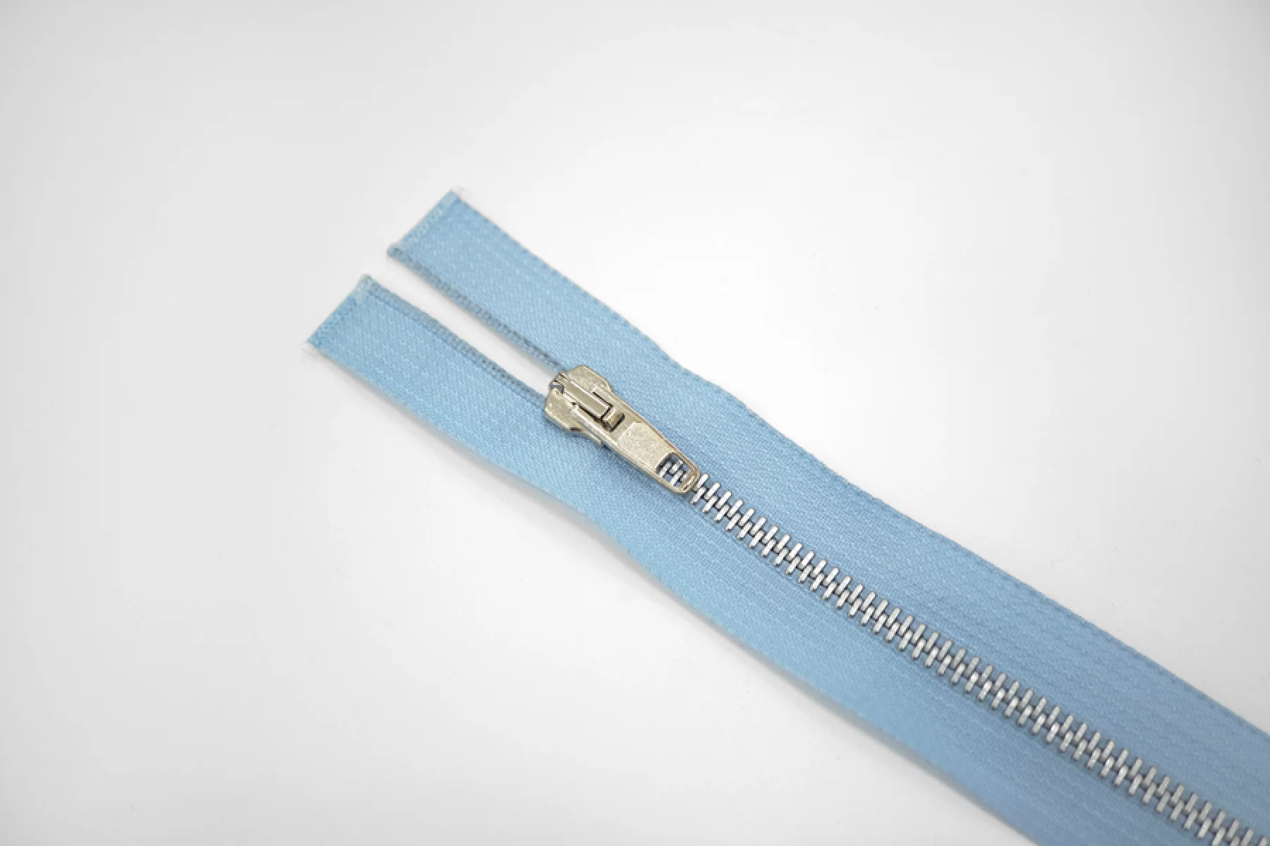 Молния металлическая разъёмная, двухзамковая, голубого цвета, зубцы серебристые. Длина 50 см.