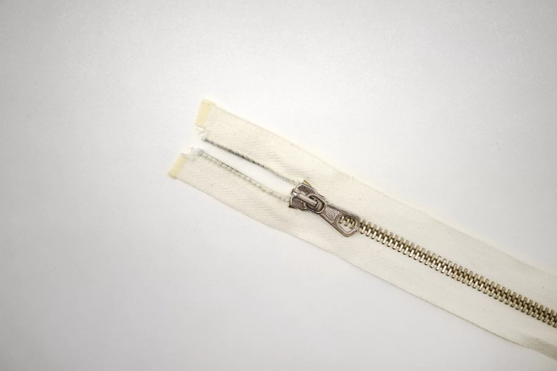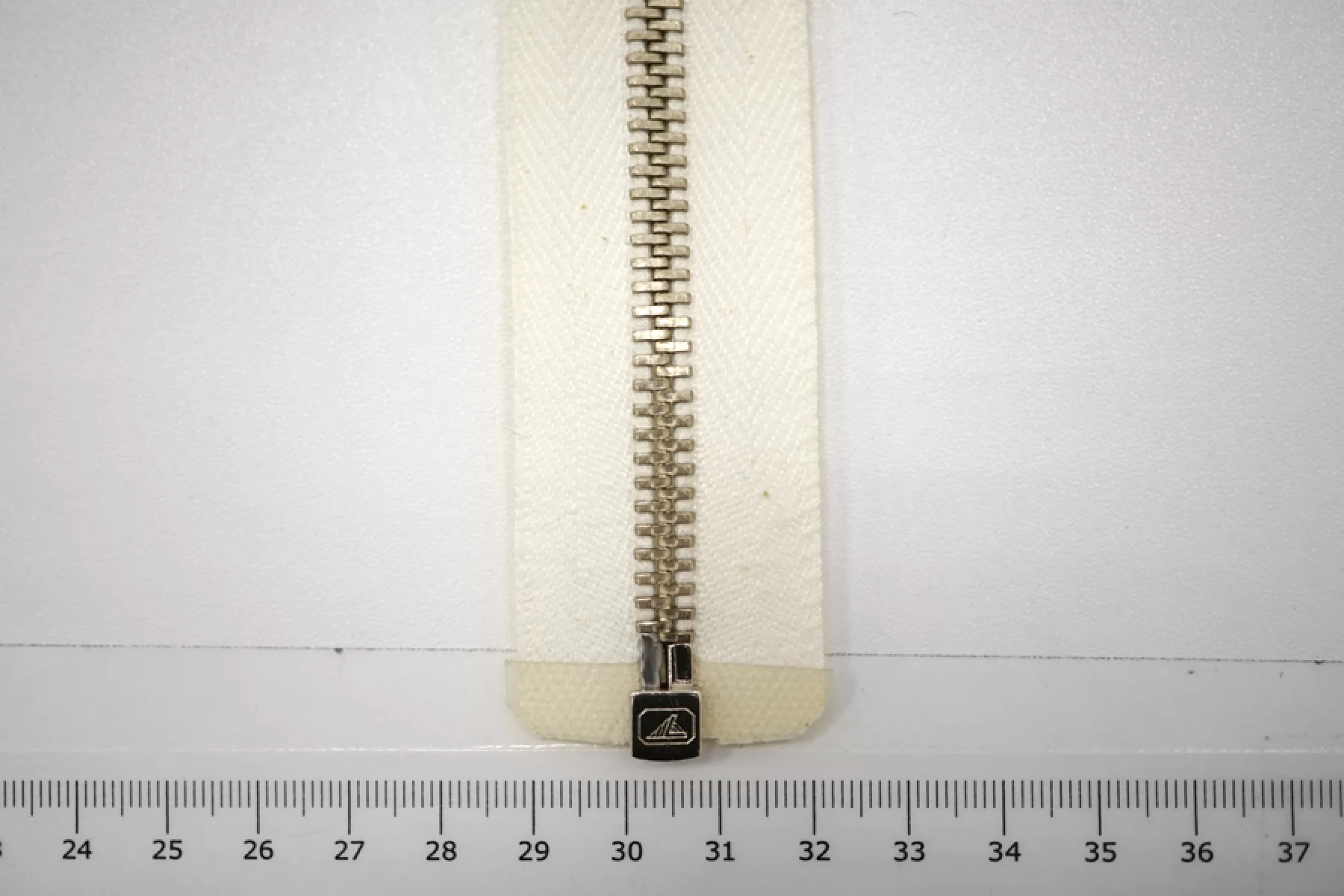 Молния металлическая от "Lampo" разъёмная, белая, цвет зубцов светло-золотистый, слайдер и пуллер серебристый. Длина 47 см.