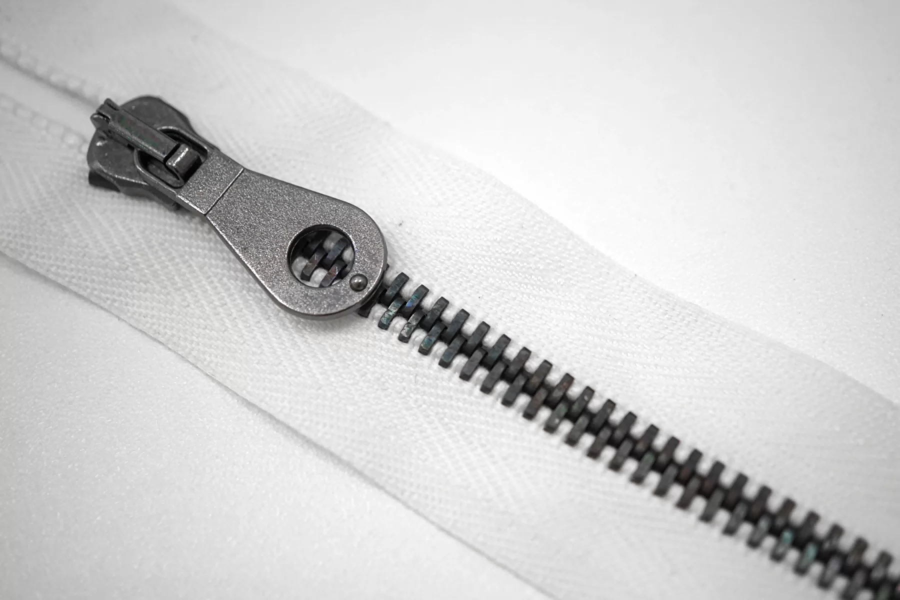 Молния металлическая от "Lampo" разъёмная, белого цвета, цвет зубцов - темный никель. Длина 70 см.