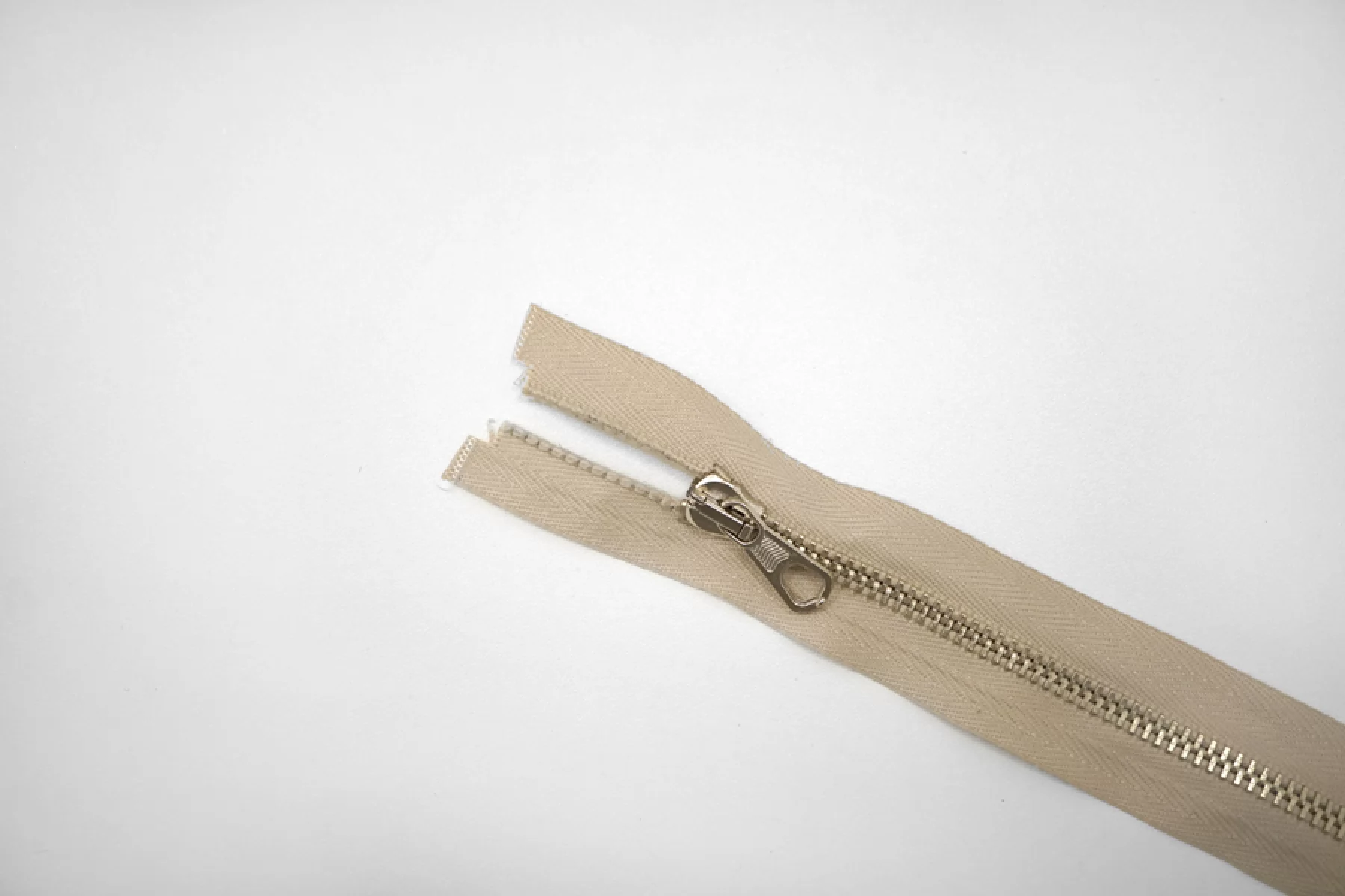 Молния металлическая от "Lampo" разъёмная, бежевая, цвет зубцов светло-золотистый. Длина 54 см.