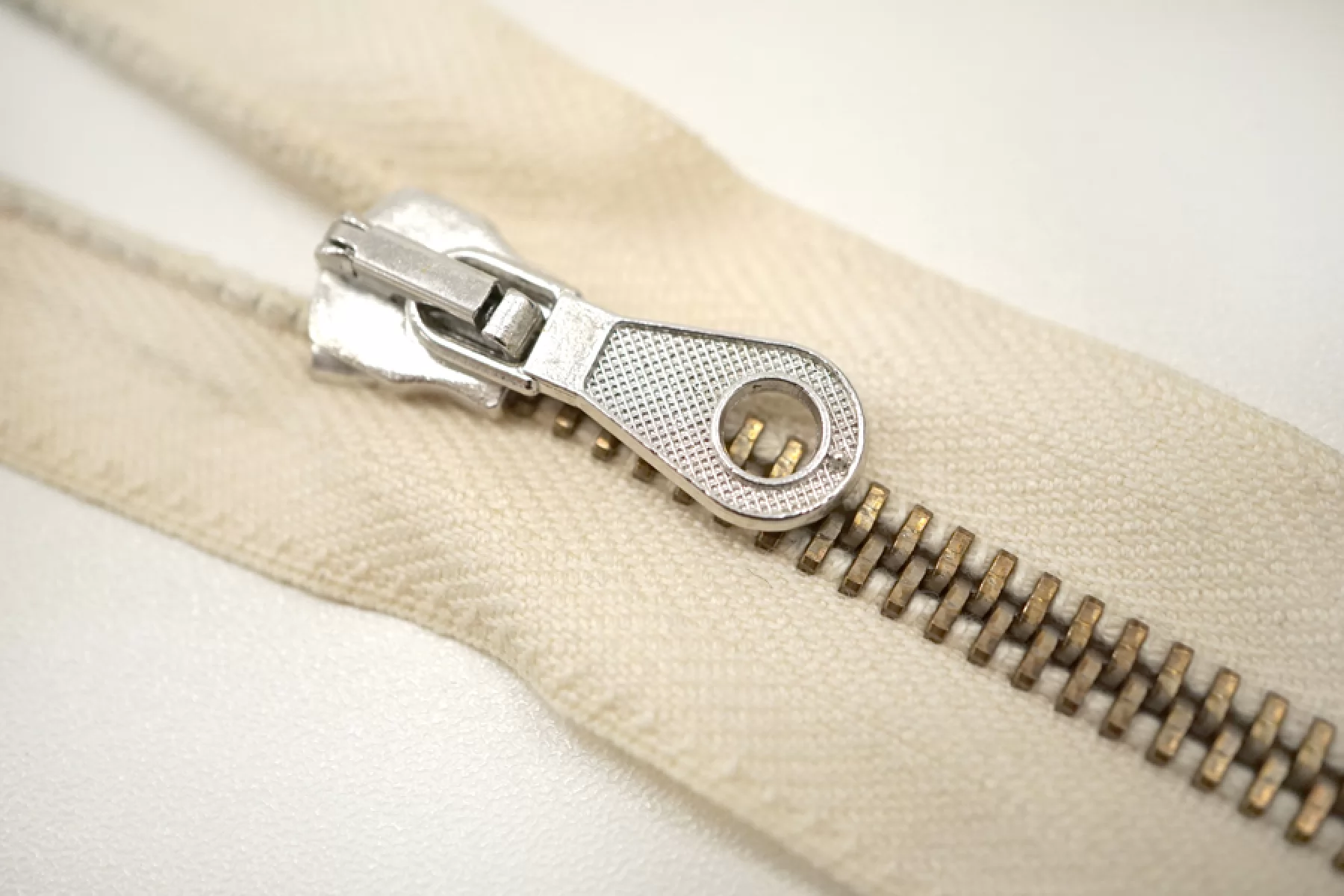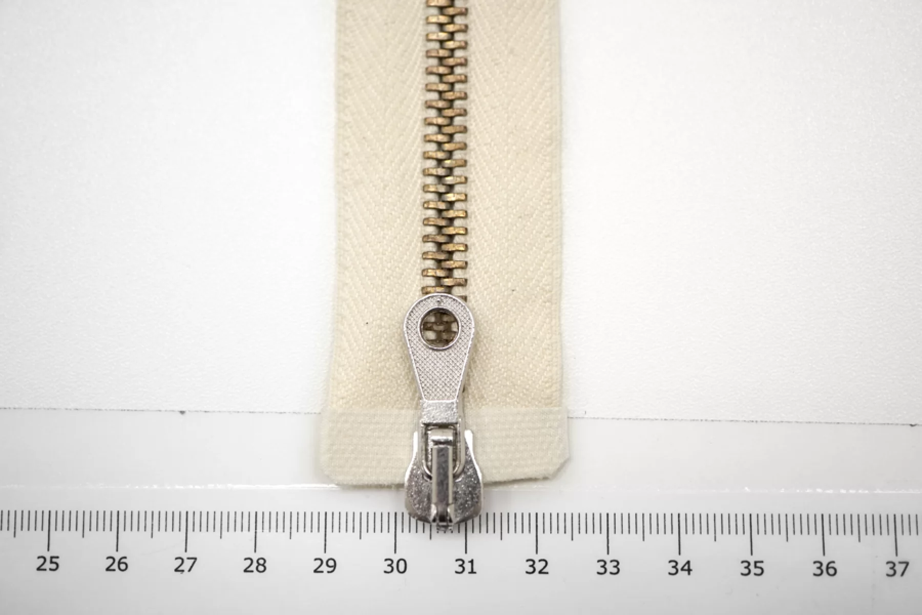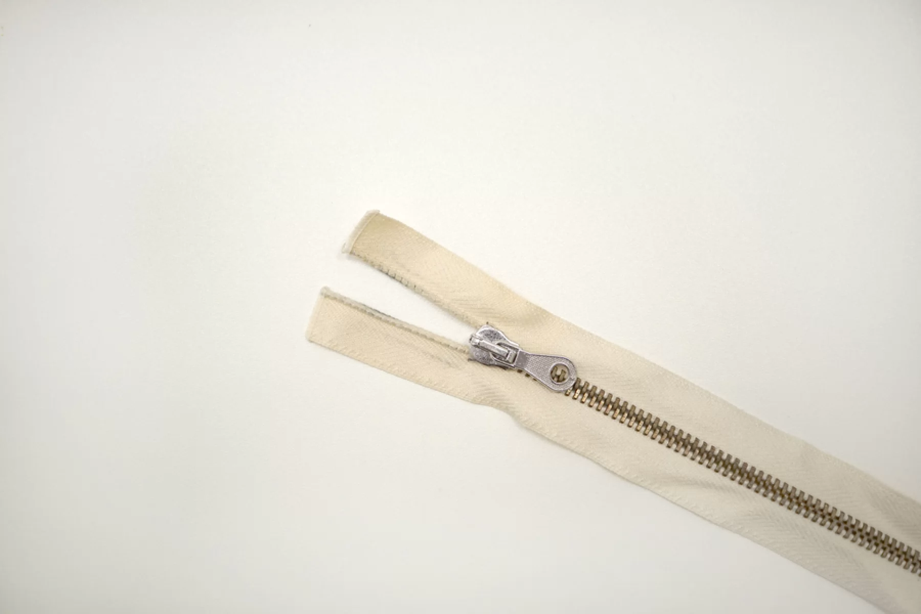 Молния металлическая от "Lampo" двухзамковая, разъёмная, молочная, цвет зубцов бронзовый, слайдер и пуллер серебристый. Длина 49 см.