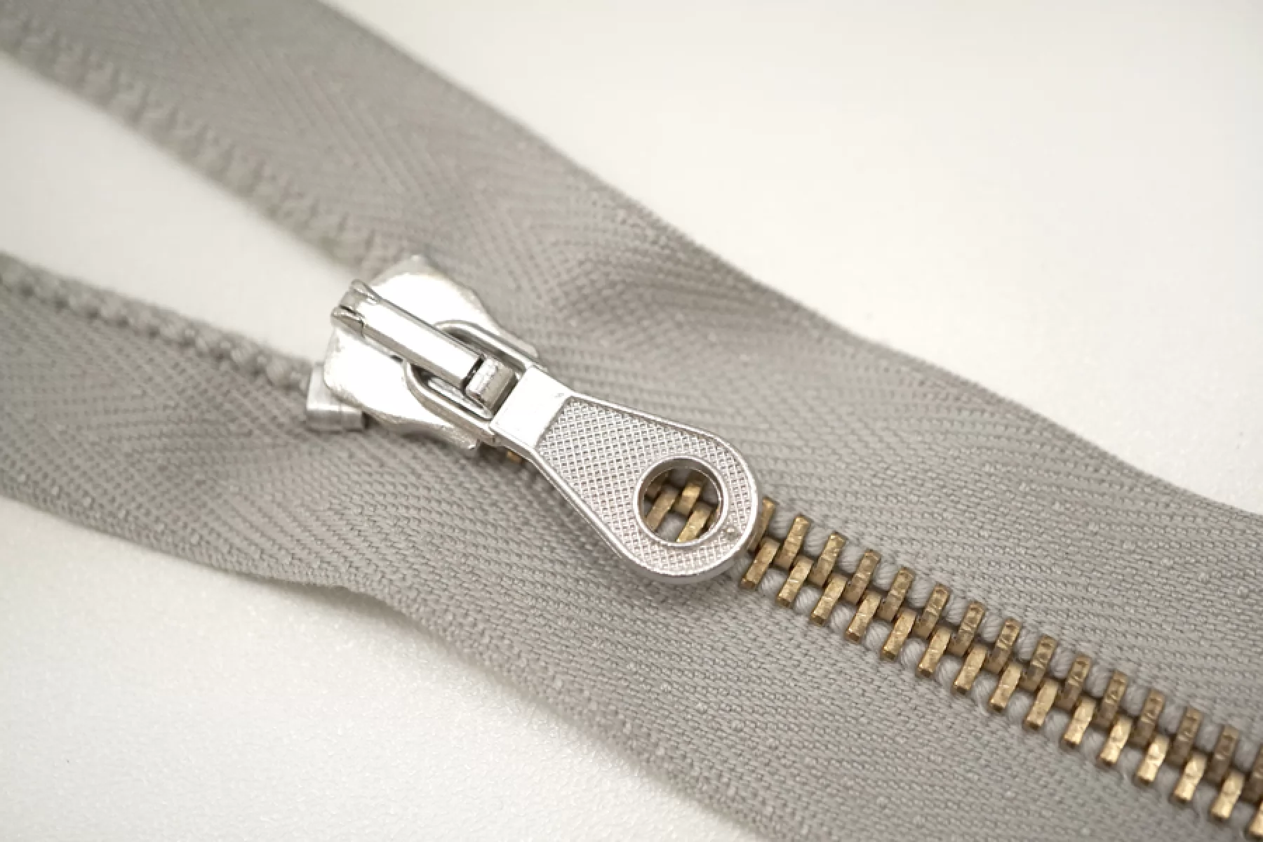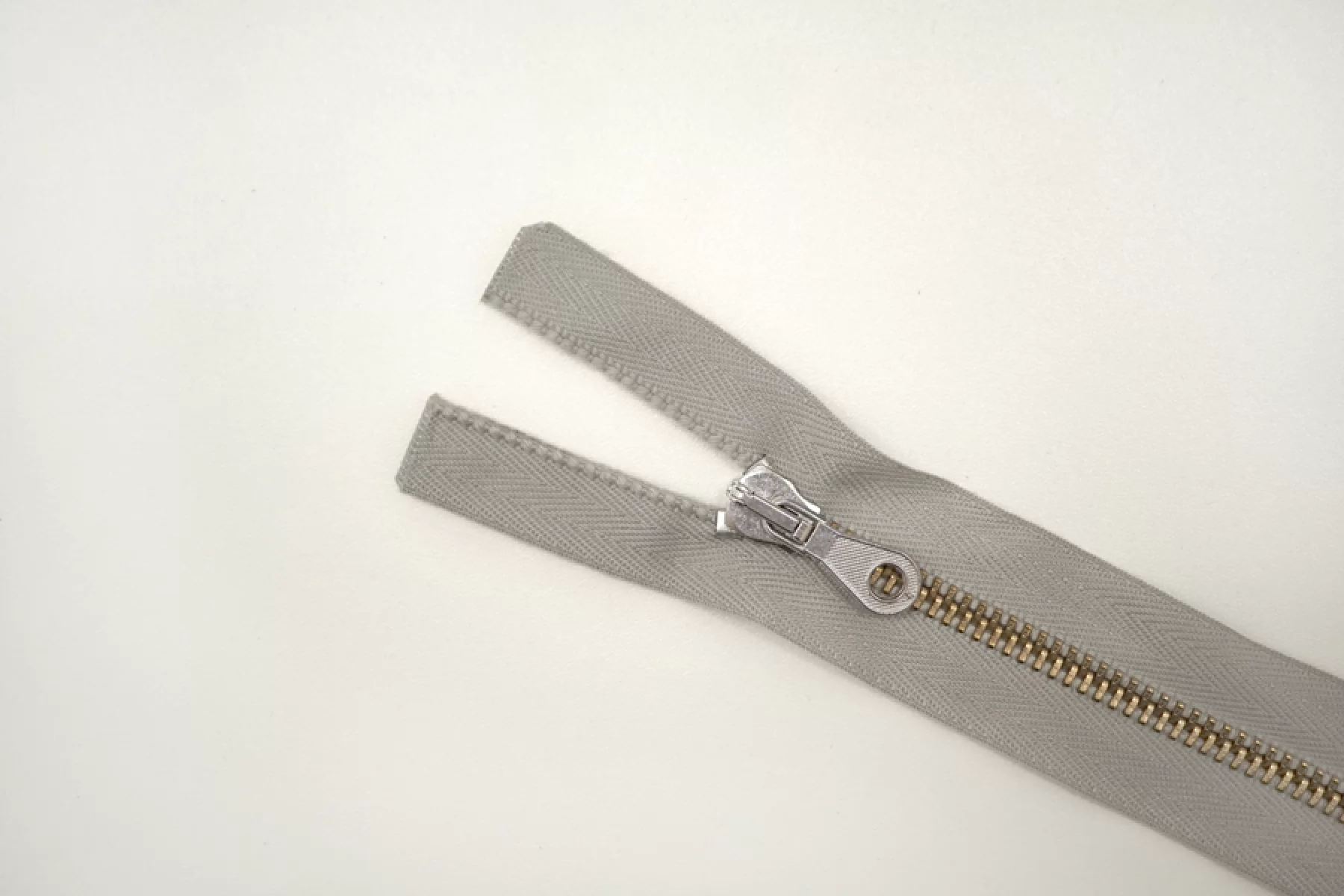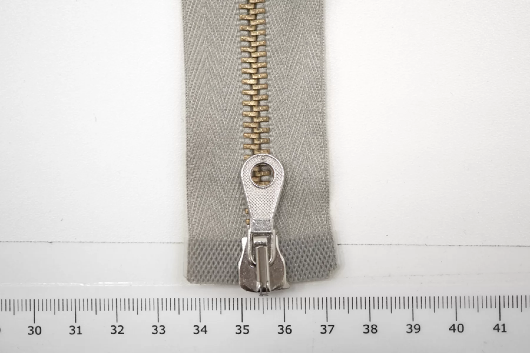 Молния металлическая от "Lampo" двухзамковая, разъёмная, серая, цвет зубцов золотистый, слайдер и пулер серебристый. Длина 59 см.