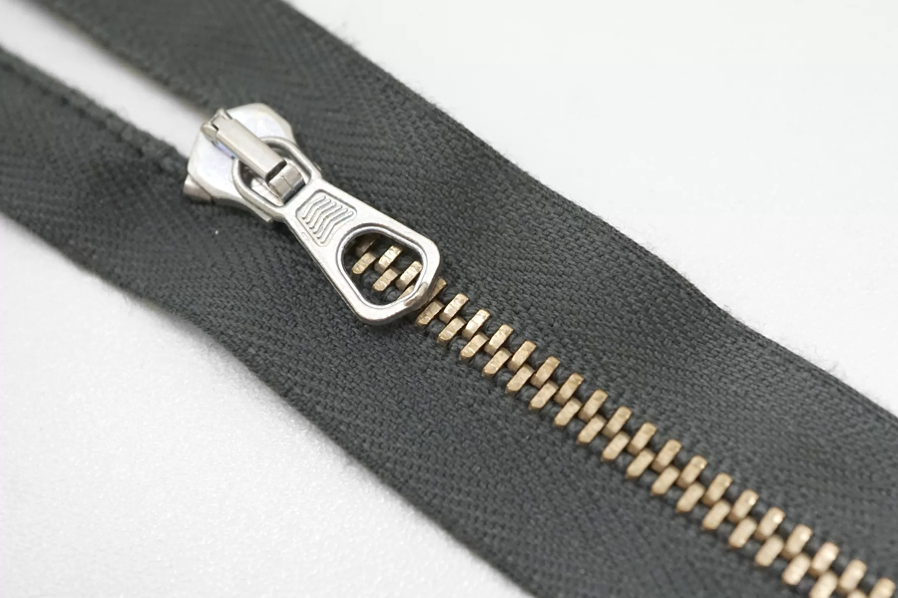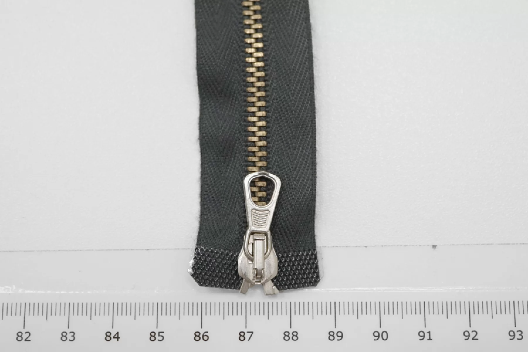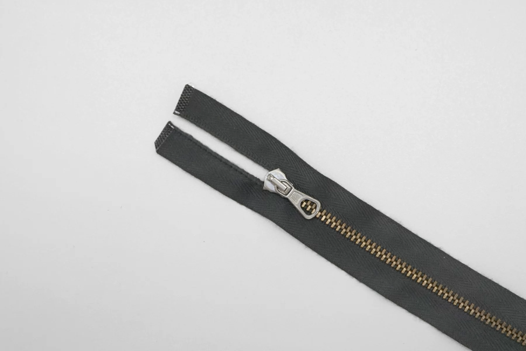 Молния металлическая от "Lampo" двухзамковая, разъёмная, темно-серая, цвет зубцов золотистый, слайдер и пуллер серебристый. Длина 46 см.