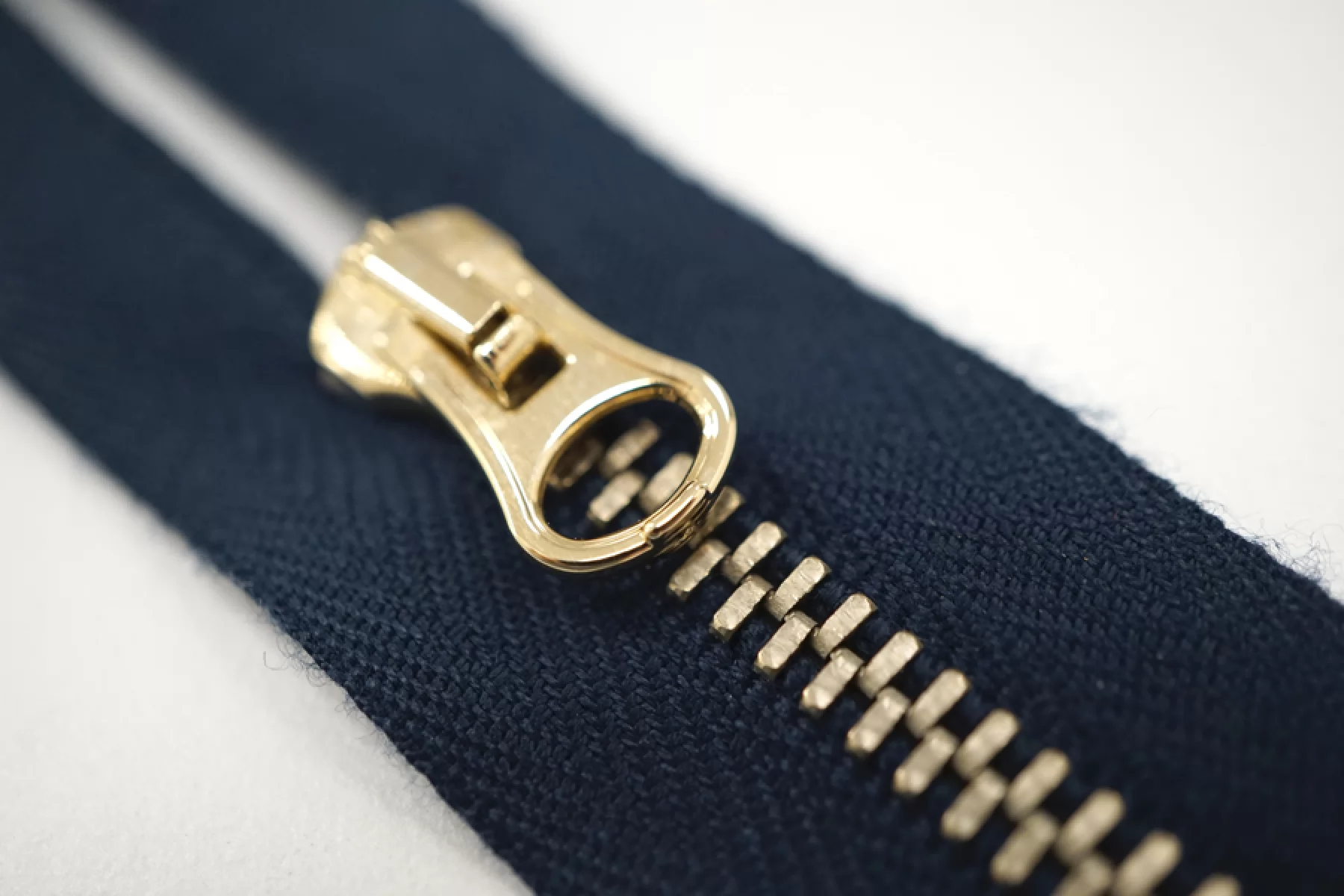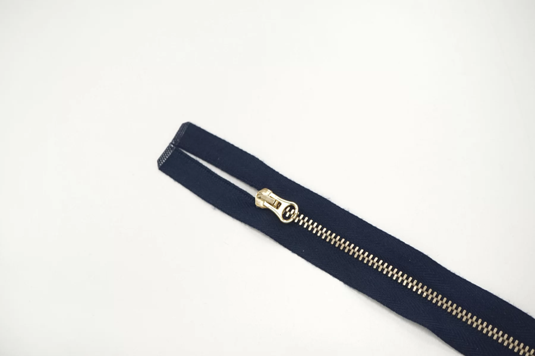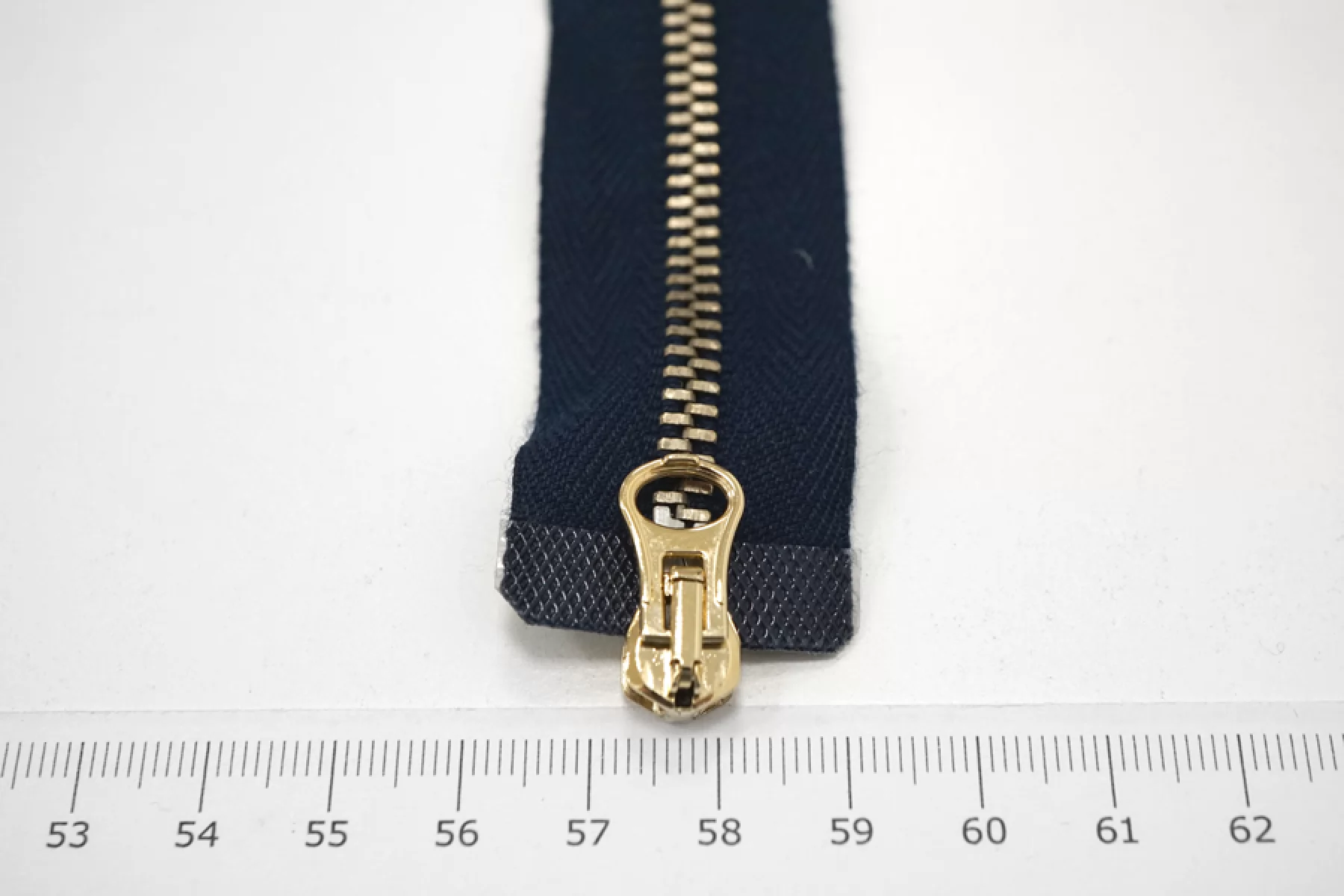 Молния металлическая от "Lampo" двухзамковая, разъёмная, темно-синяя, цвет зубцов золотистый. Длина 52 см.