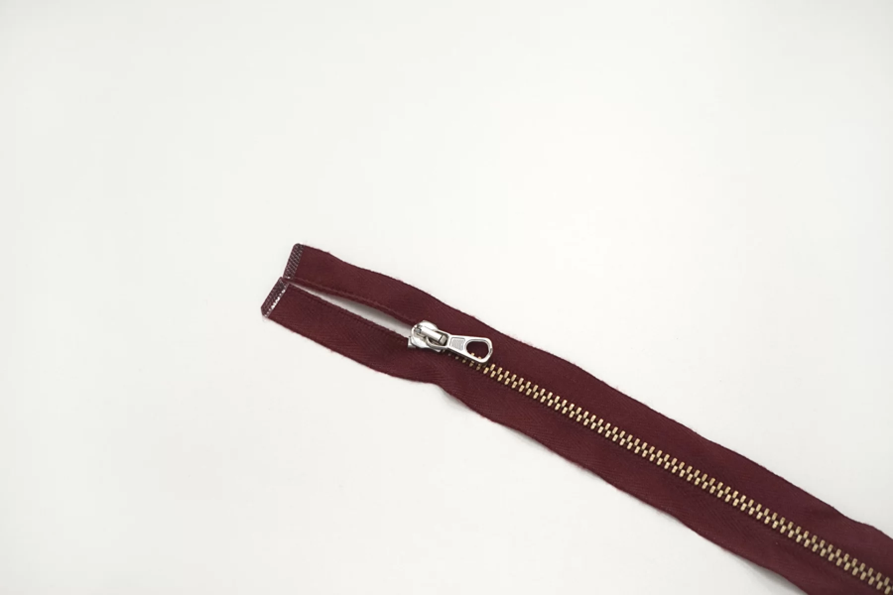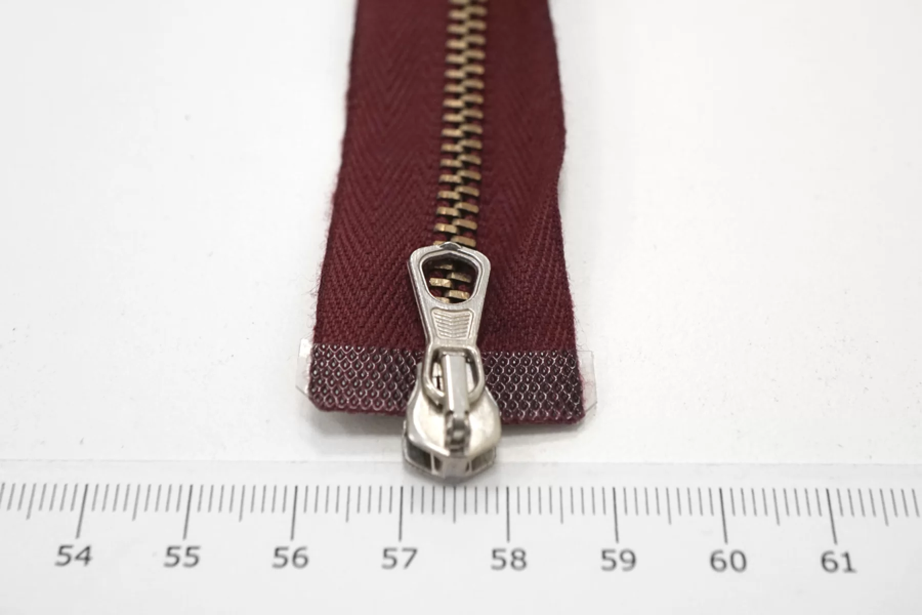 Молния металлическая от "Lampo" двухзамковая, разъёмная, ягодная, цвет зубцов золотистый, слайдер и пулер серебристый. Длина 49 см.