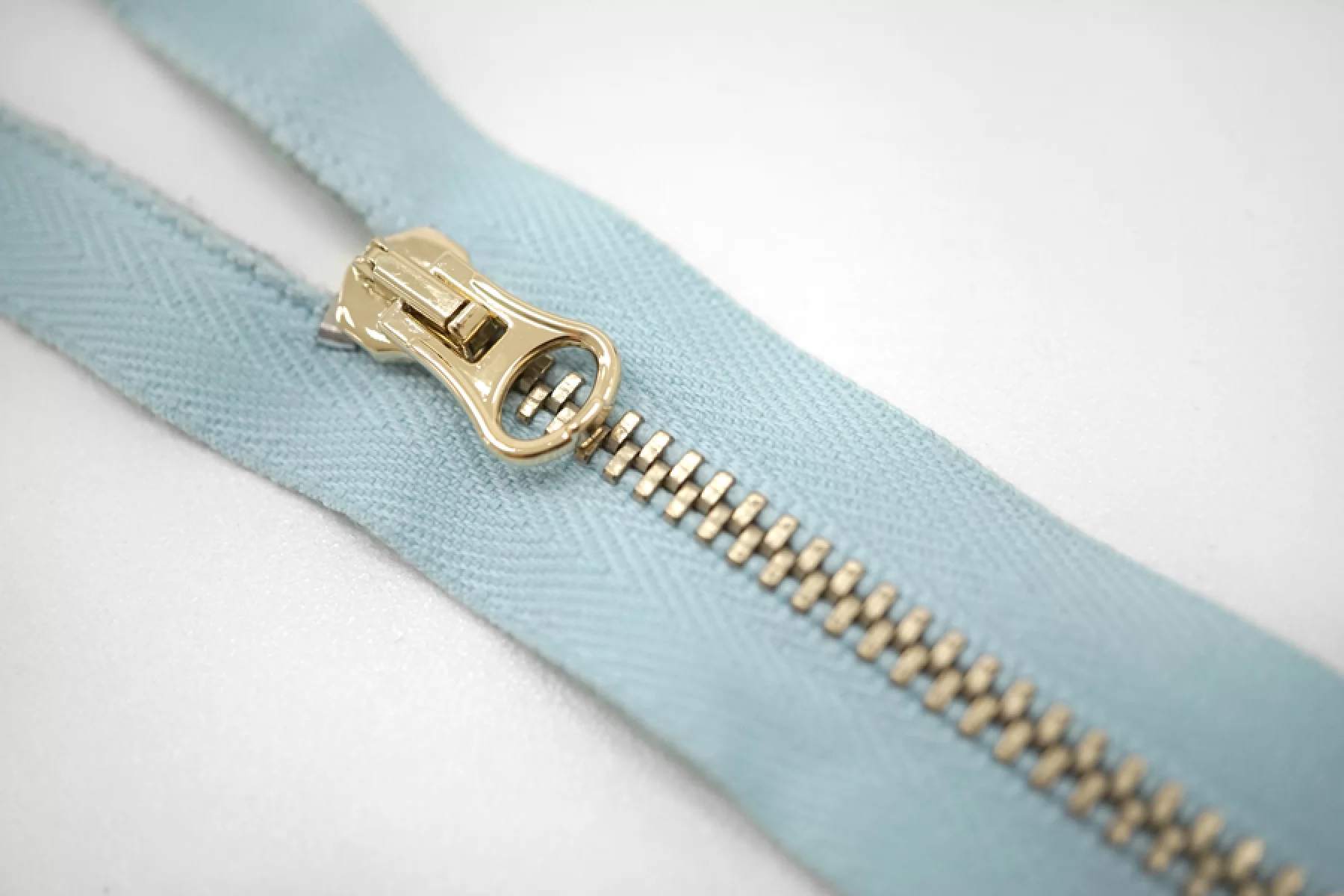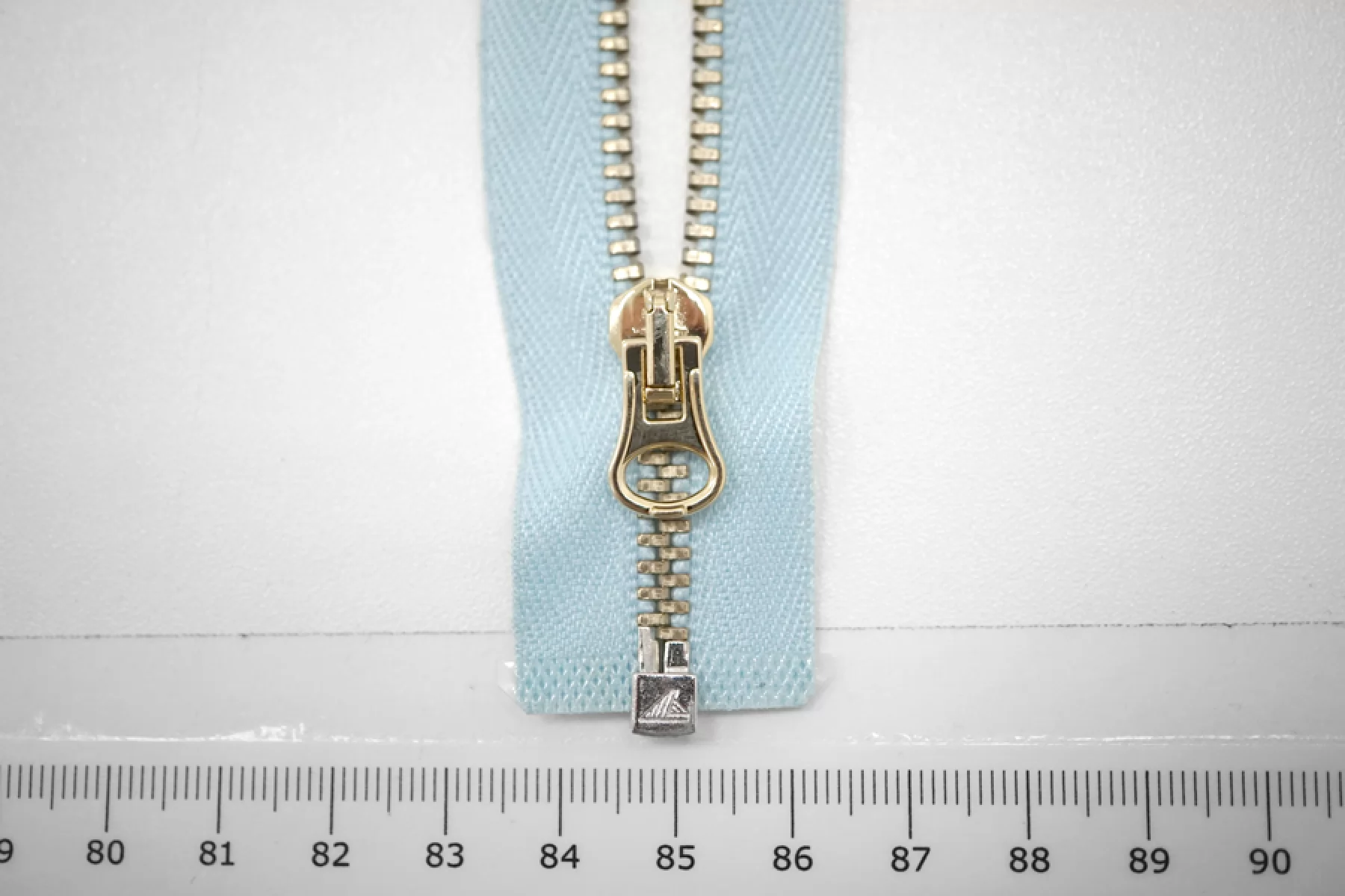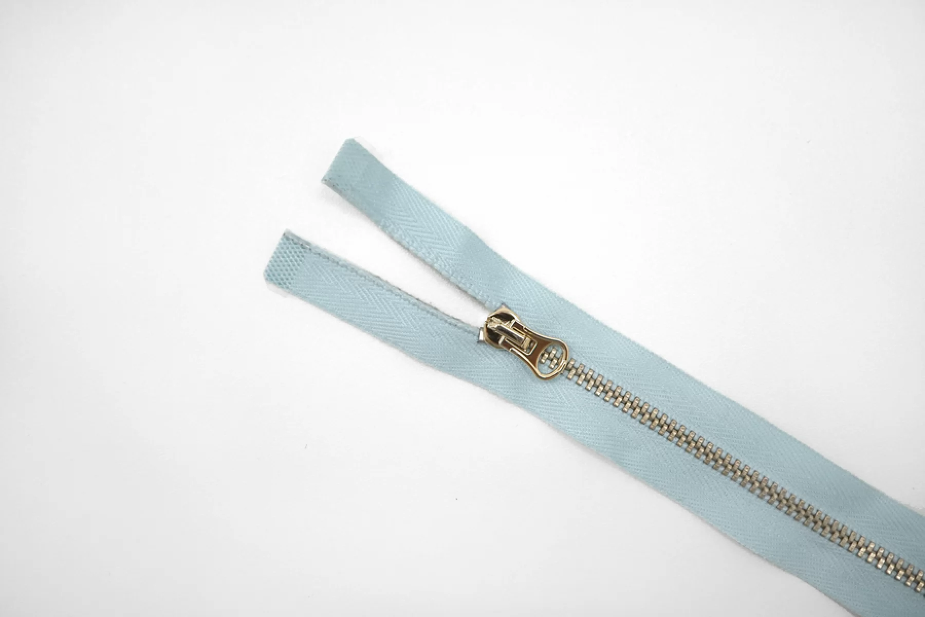 Молния металлическая от "Lampo" разъёмная, голубая, цвет зубцов - золотистый. Длина 53 см.