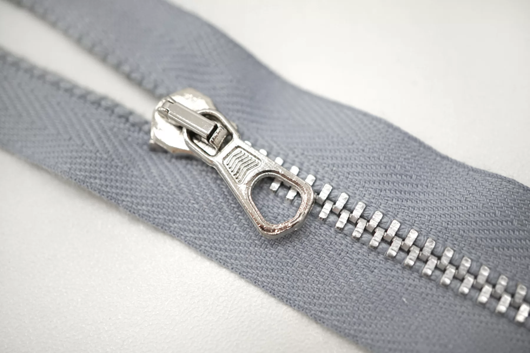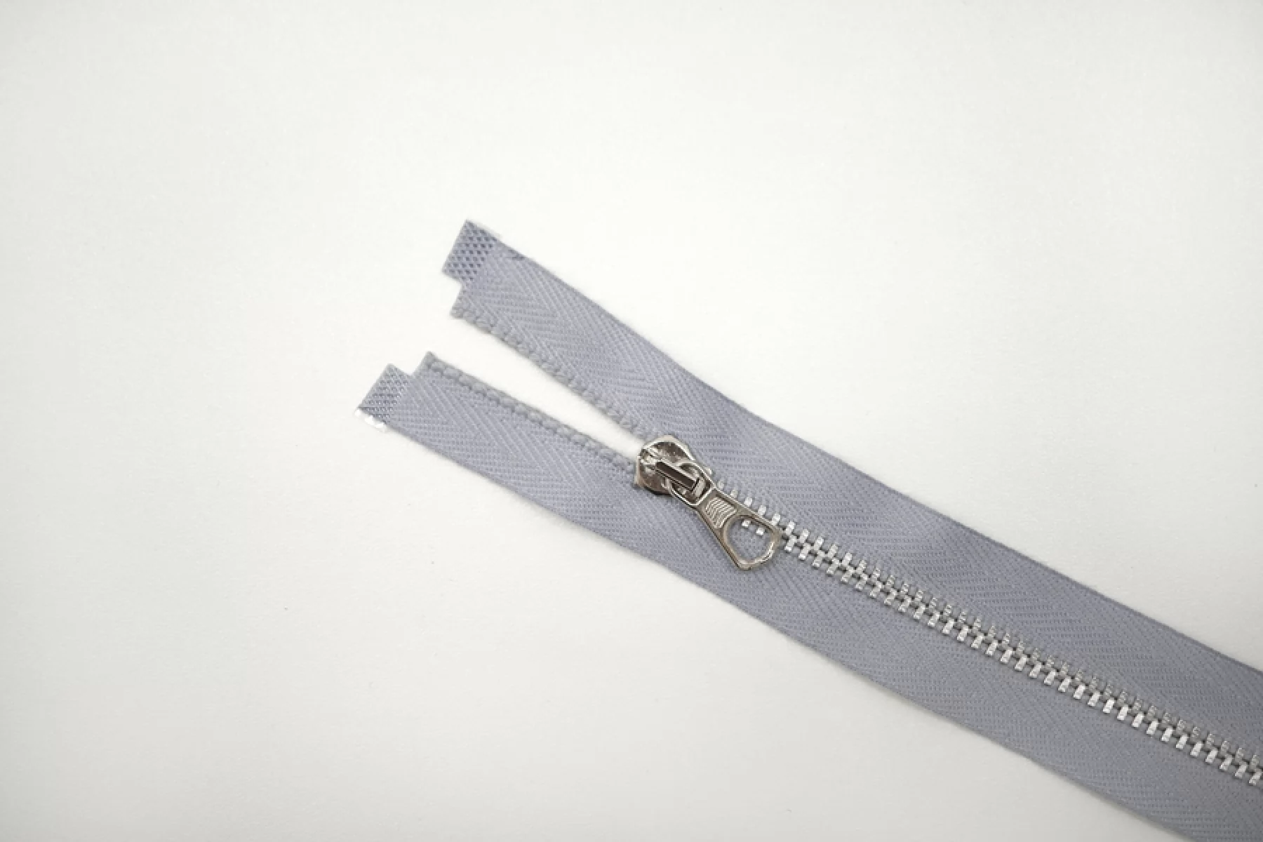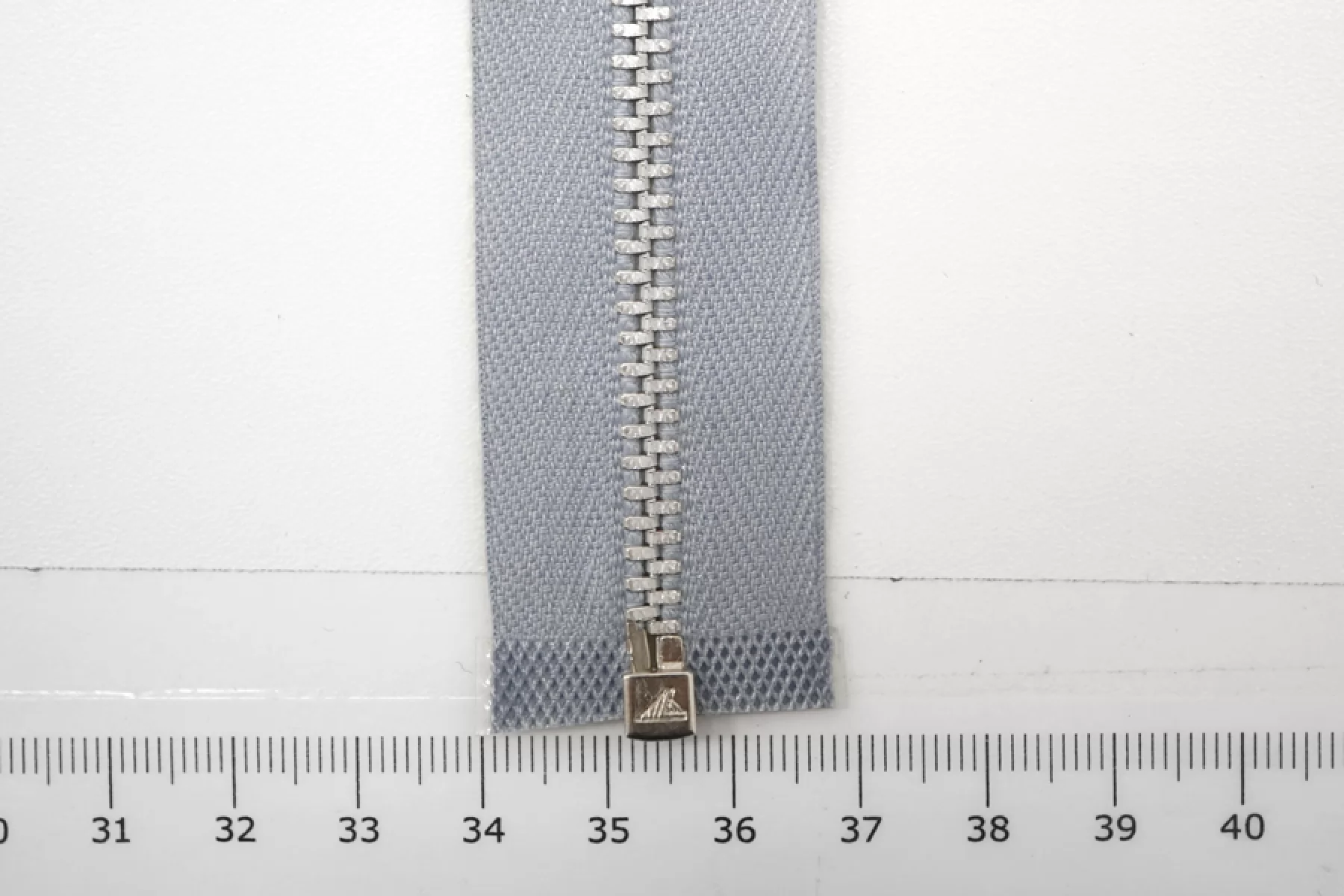 Молния металлическая от "Lampo" разъёмная, голубовато-серая, цвет зубцов серебристый. Длина 46 см.