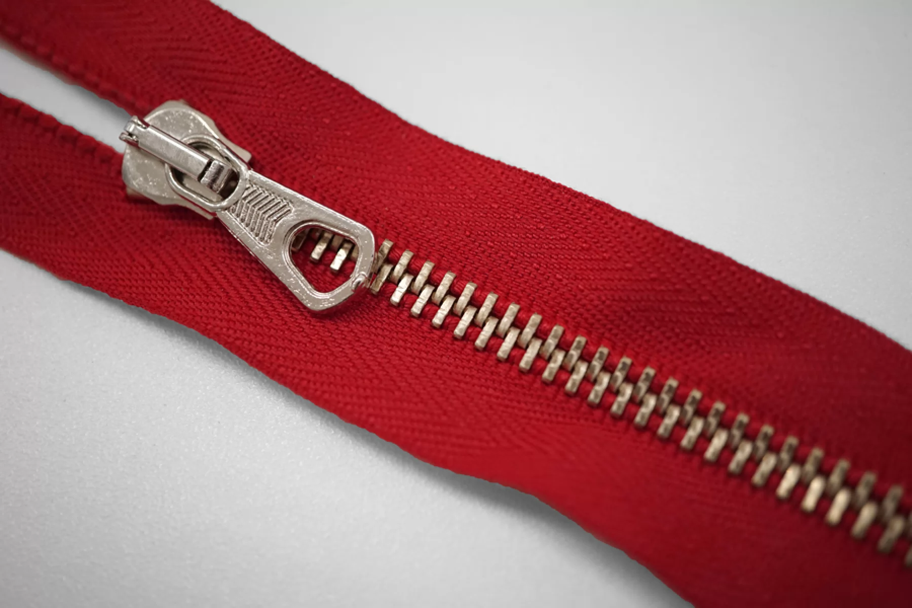 Молния металлическая от "Lampo" разъёмная, красная, цвет зубцов светло-золотистый. Длина 69 см.