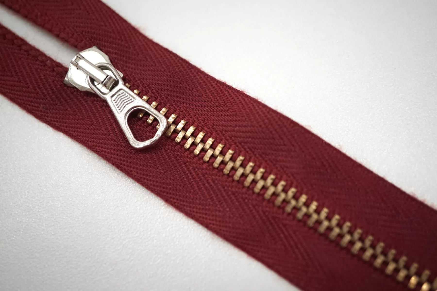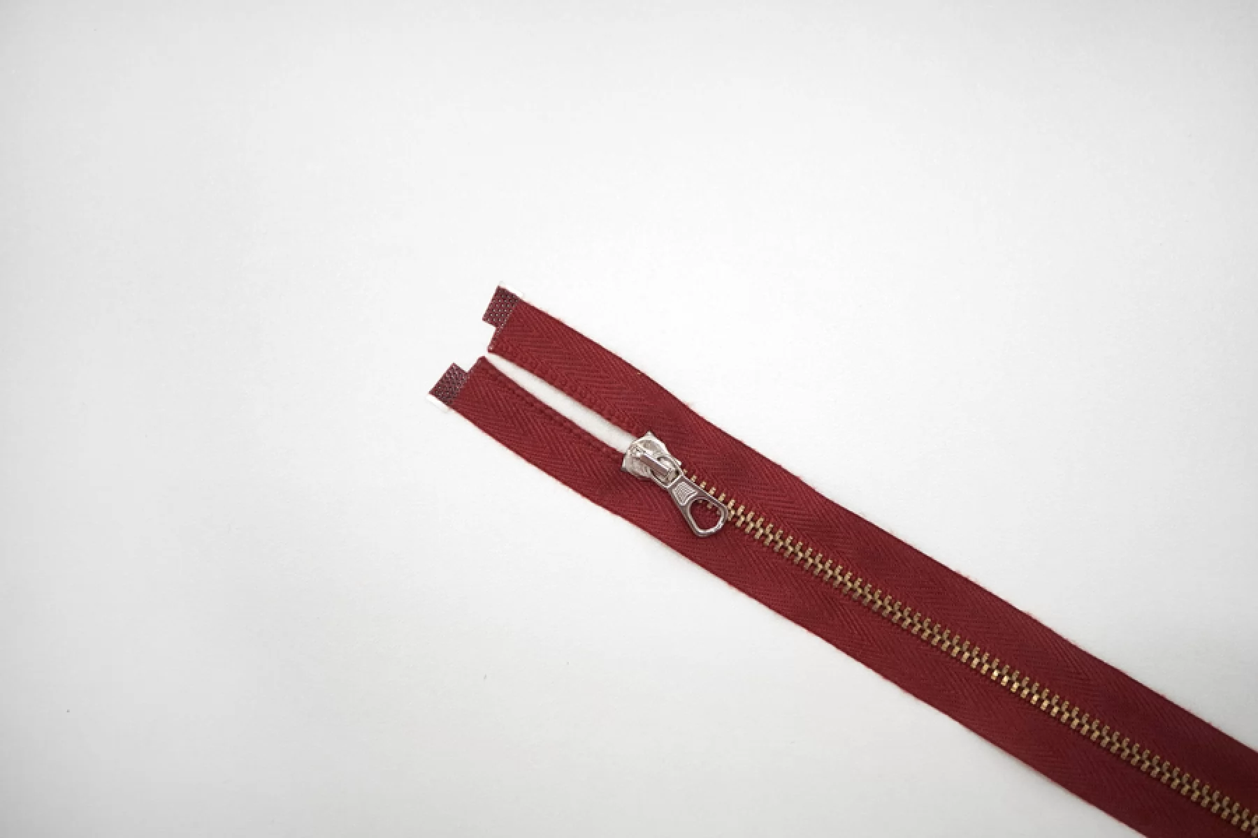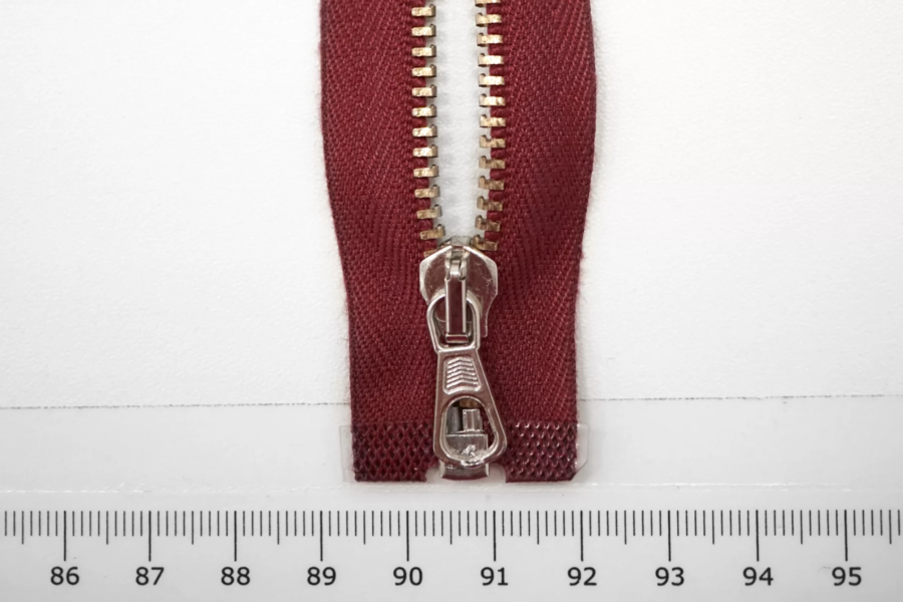 Молния металлическая от "Lampo" разъёмная, малиновая, цвет зубцов - золотистый, слайдера и пуллера - серебристый. Длина 46 см.