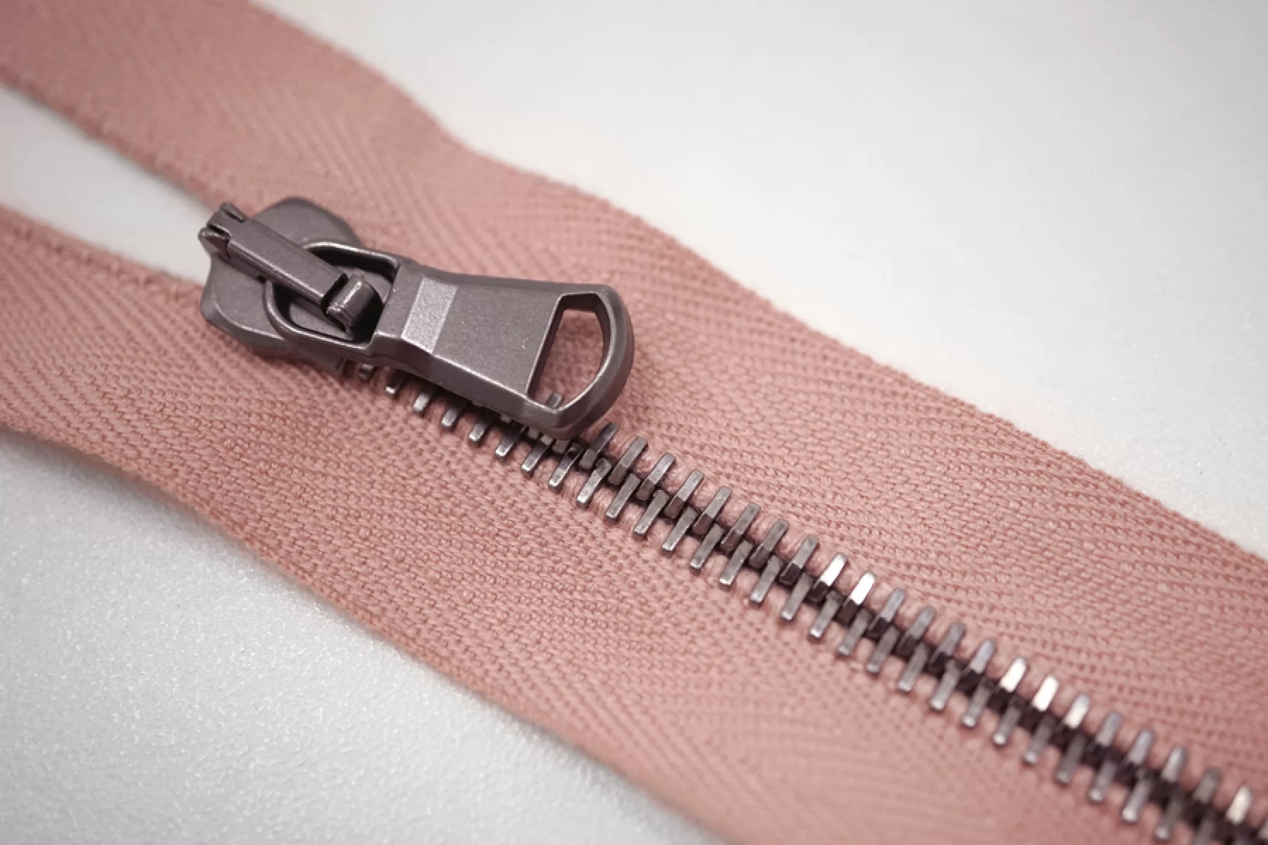 Молния металлическая от "Lampo" разъёмная, пудрово-розовая, цвет зубцов никель. Длина 48 см.