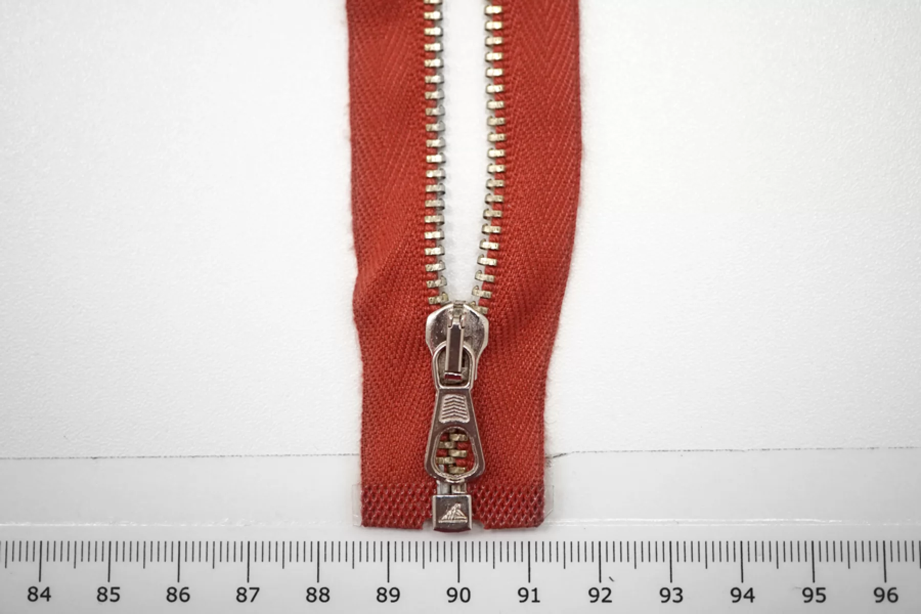 Молния металлическая от "Lampo" разъёмная, цвета кирпича, цвет зубцов светло-золотистый. Длина 42 см.
