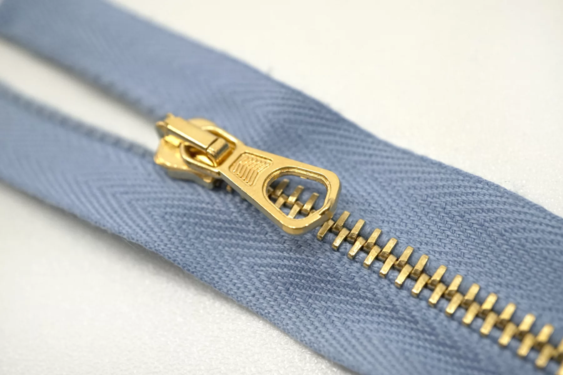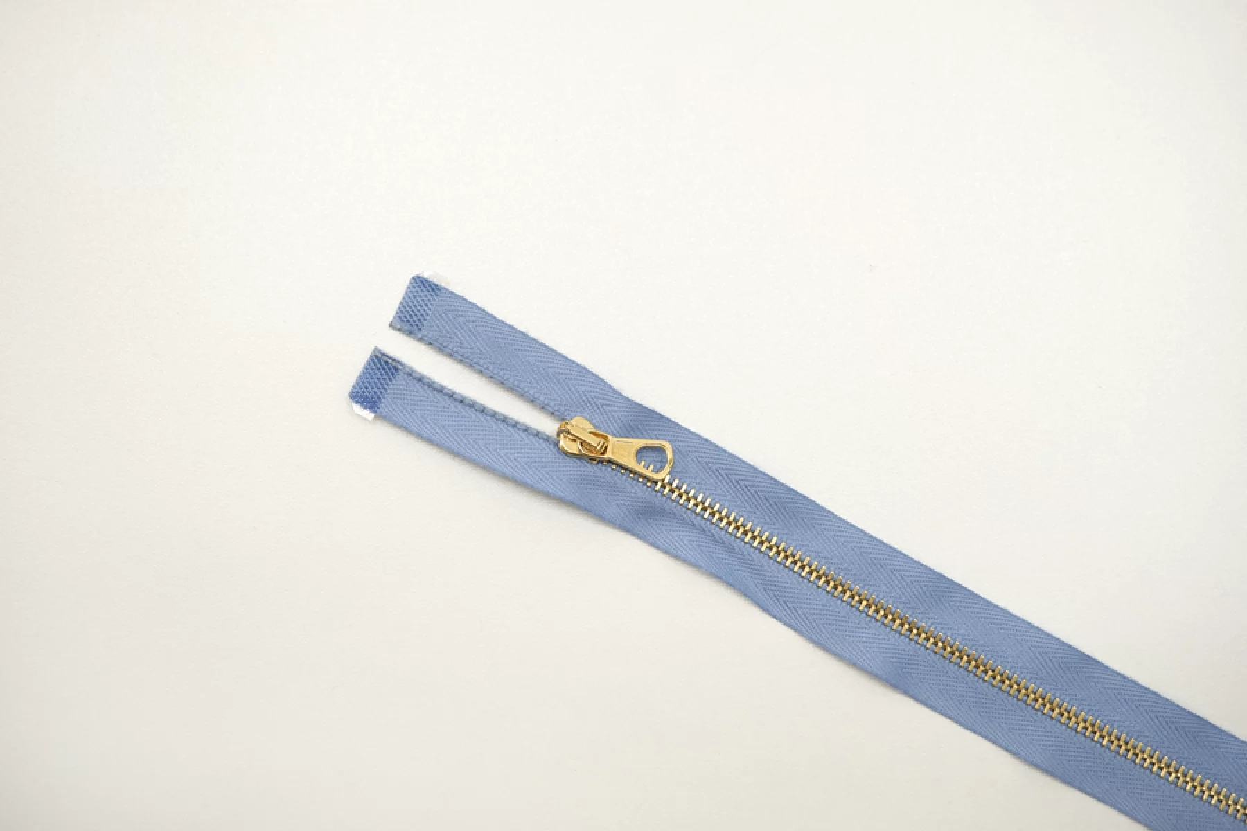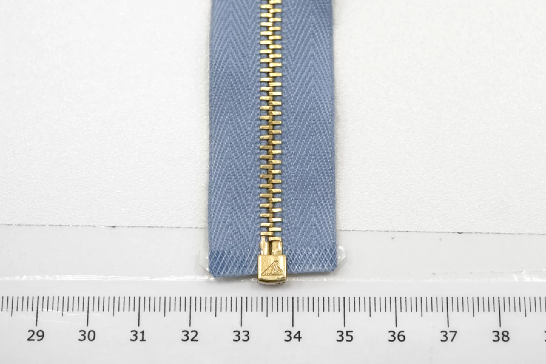 Молния металлическая от "Lampo" разъёмная, светло-васильковая, цвет зубцов золотистый. Длина 44 см.